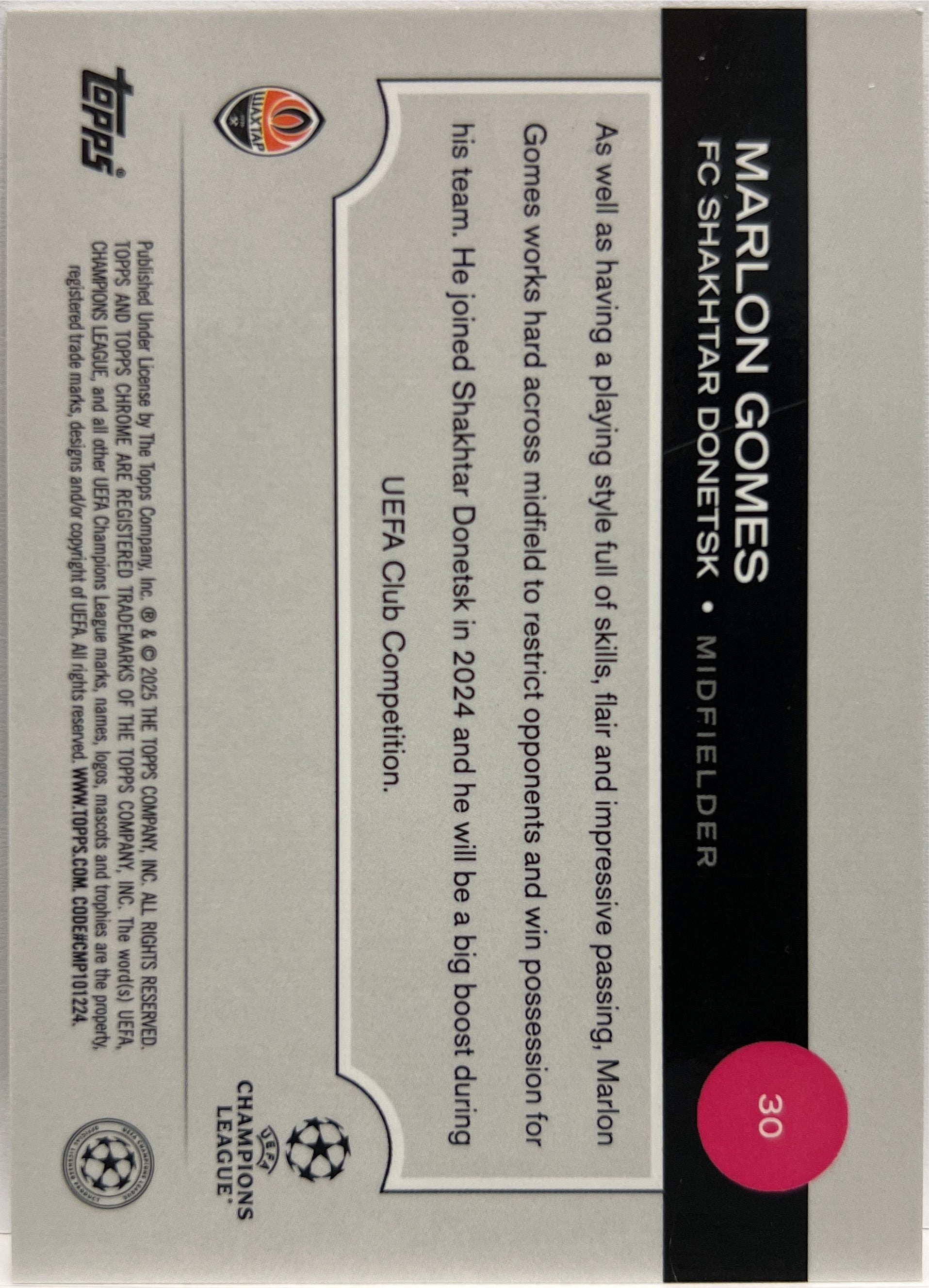 Marlon Gomes 41/50 Rookie Gold Lava Topps Chrome UCC 2024/25 FC Shakhtar Donetsk
