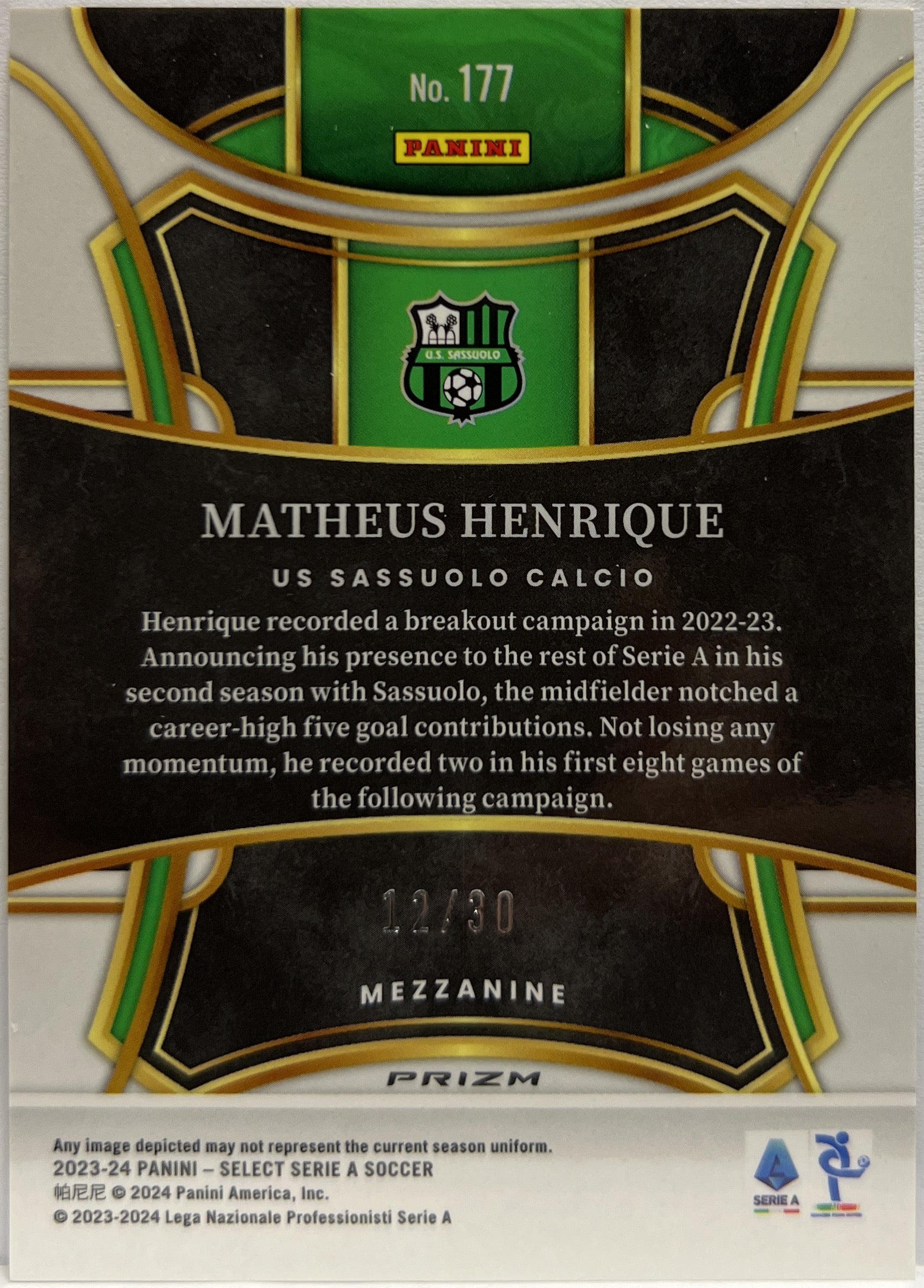 Matheus Henrique 12/30 Mezzanine Winter Camo Select Serie A 2023/24 US Sassuolo Calcio