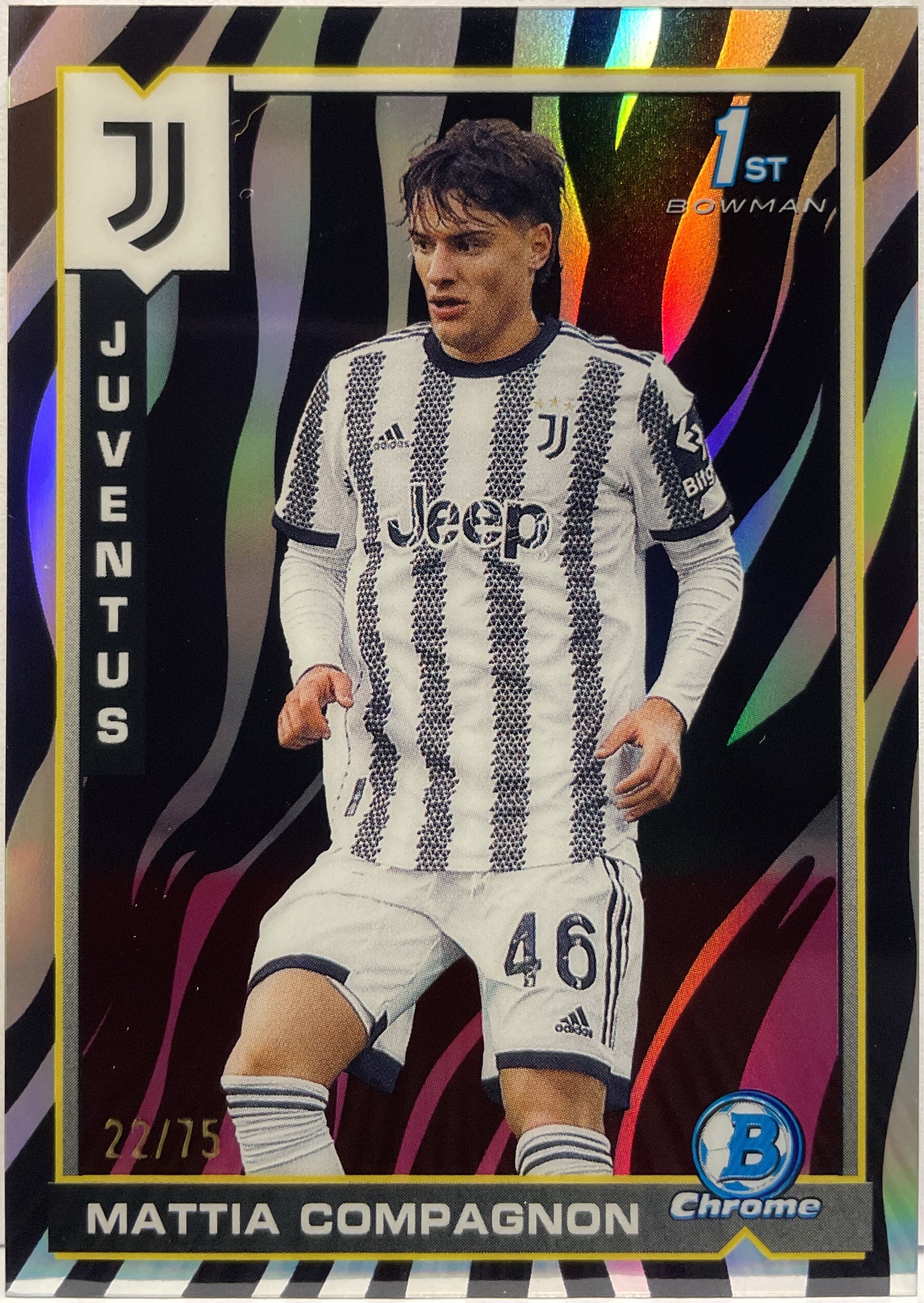 Mattia Compagnon 22/75 1ST Bowman Zebra Topps Chrome Juventus 2022/23