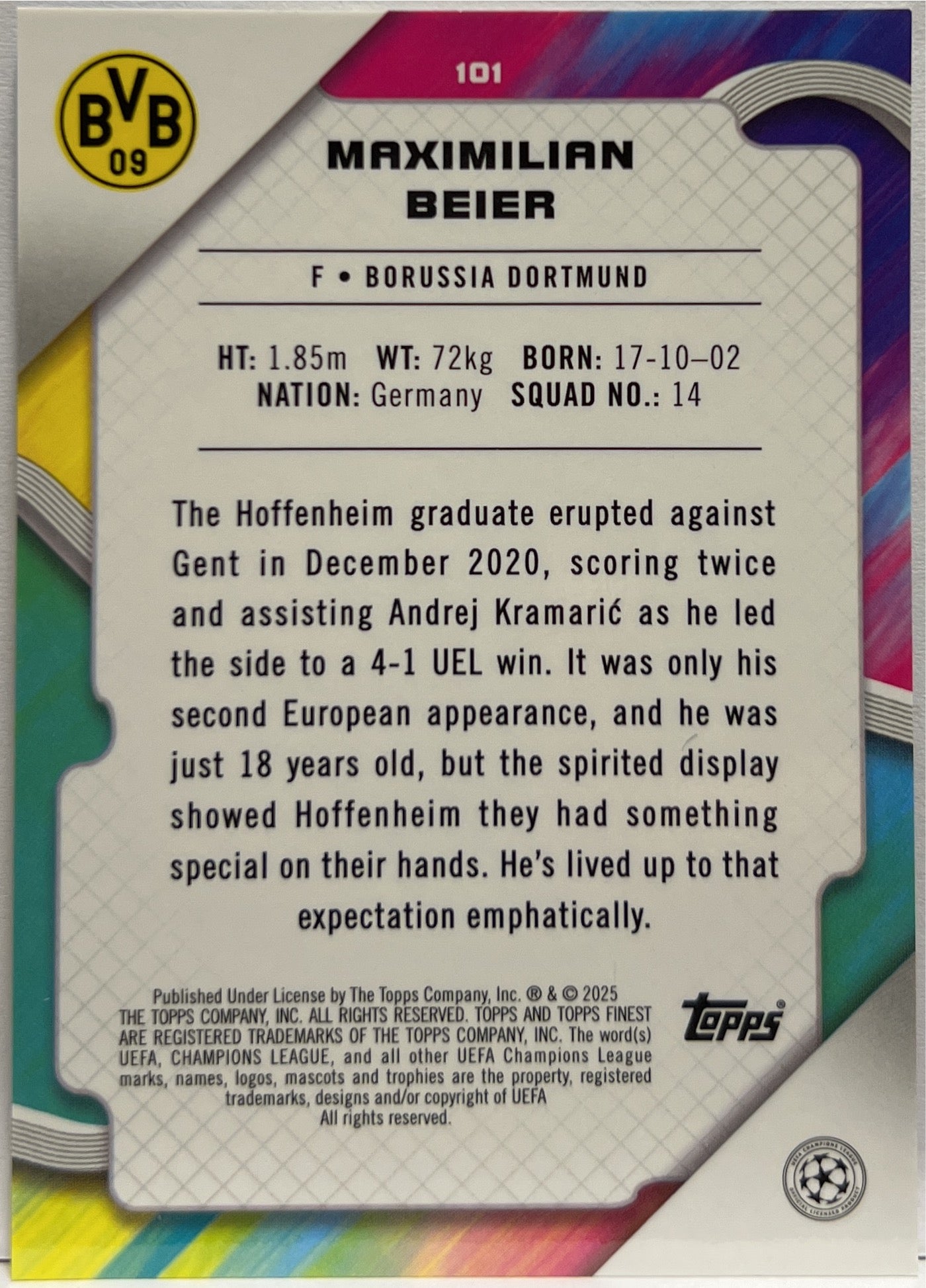 Maximilian Beier 17/50 Rose Gold Mini Diamond Topps Finest UCC 2024/25 Borussia Dortmund