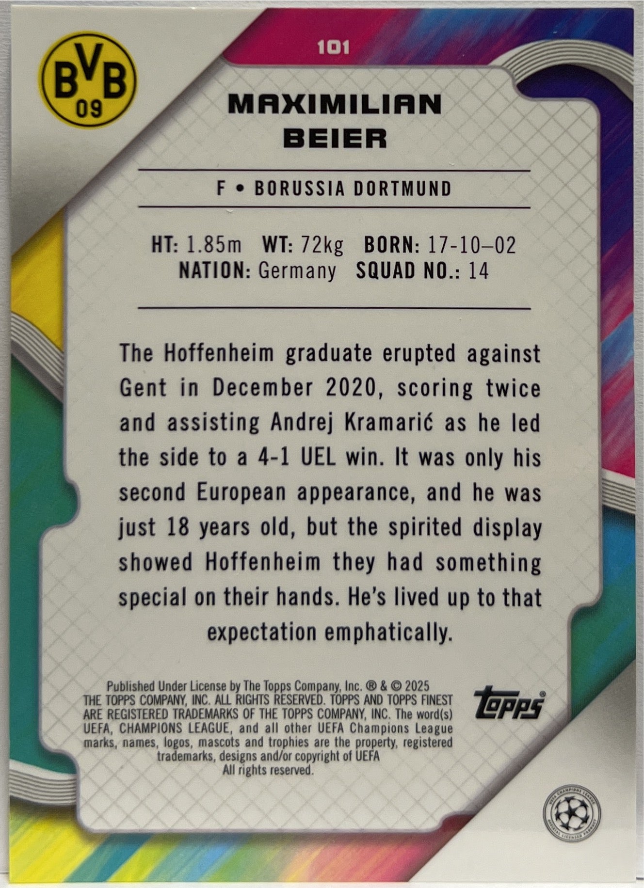 Maximilian Beier 1/50 Gold Topps Finest UCC 2024/25 Borussia Dortmund