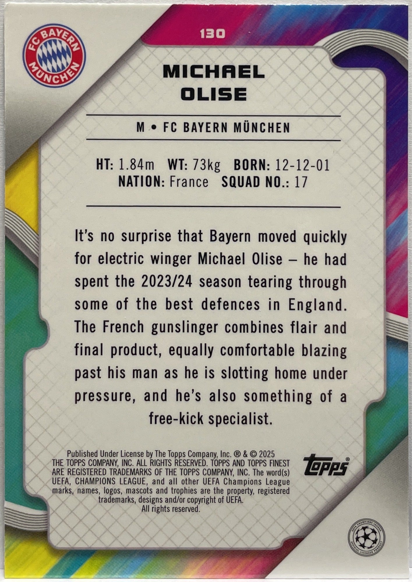 Michael Olise 164/275 Sky Blue Topps Finest UCC 2024/25 FC Bayern Munchen