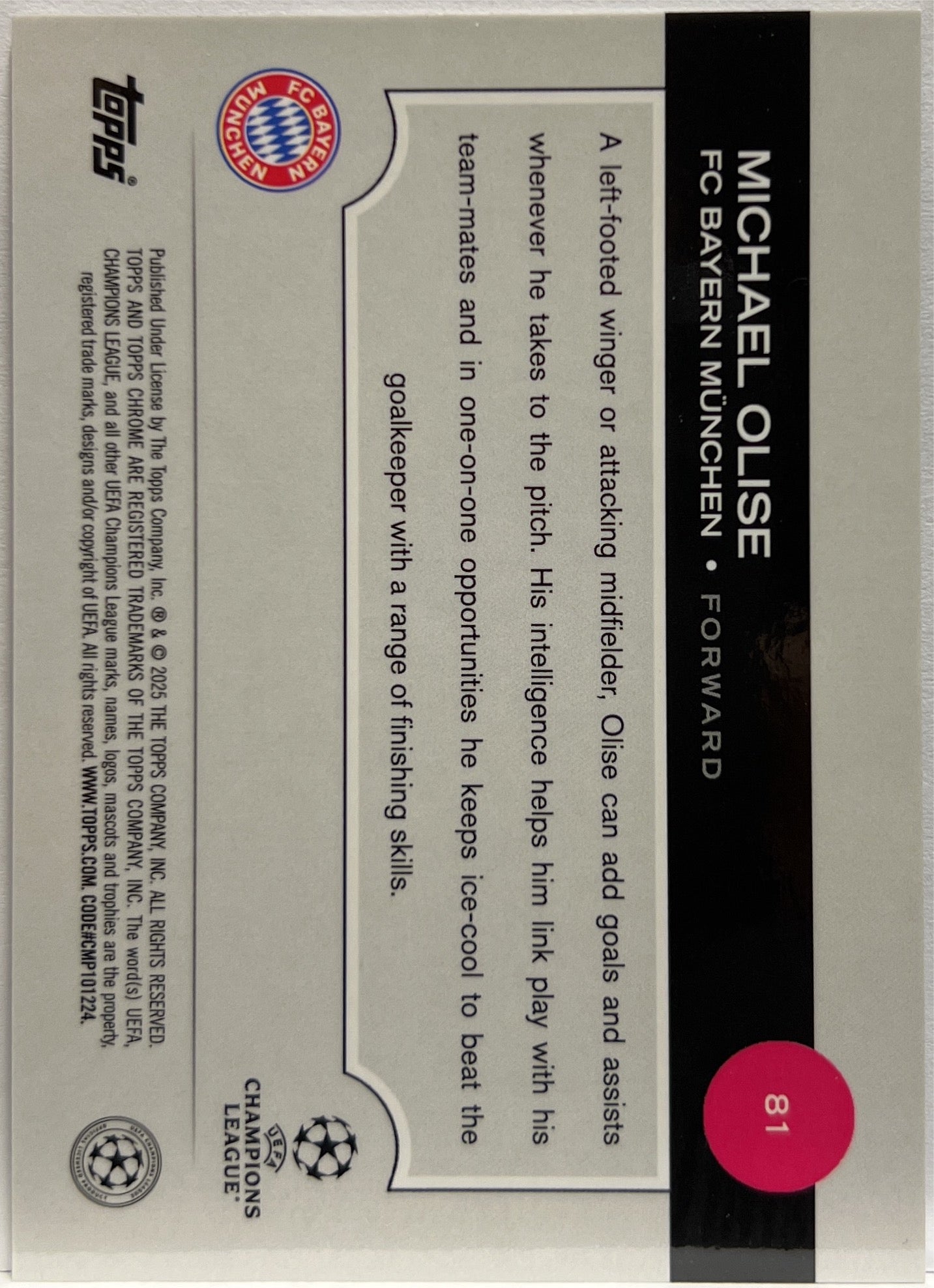 Michael Olise 40/52 Toppsfractor Topps Chrome UCC 2024/25 FC Bayern Munchen