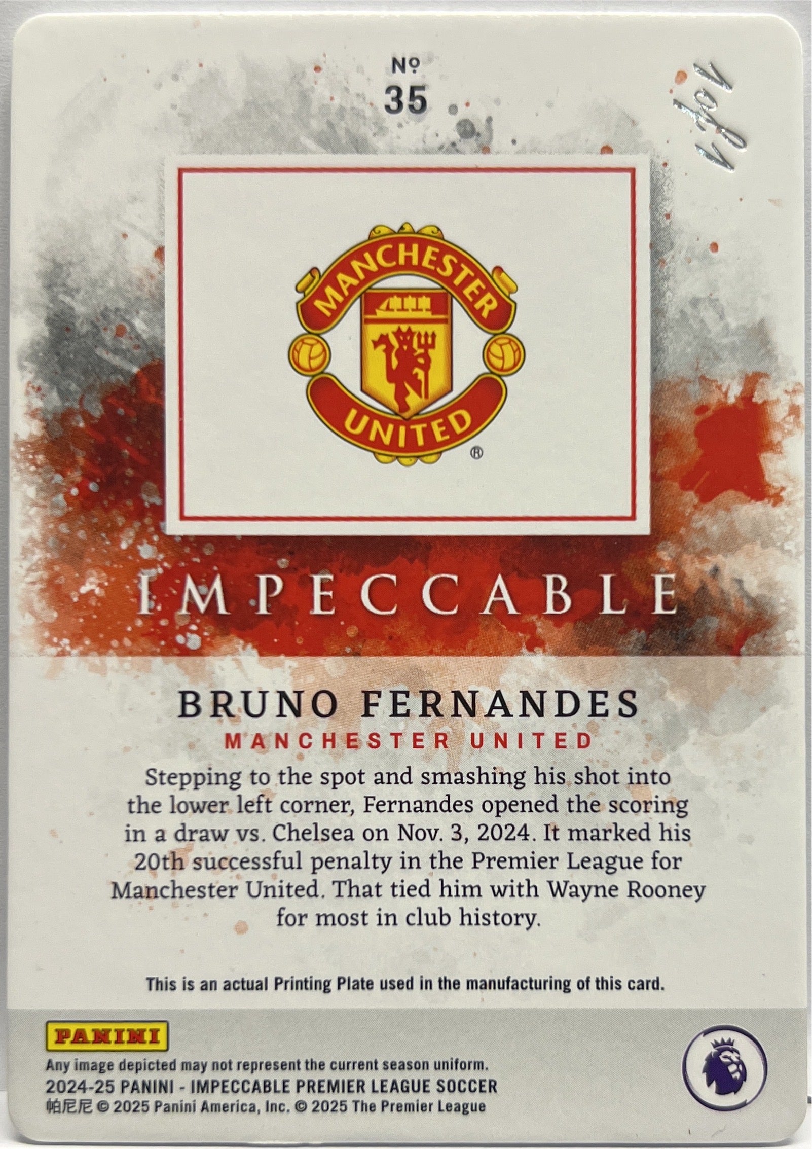 Bruno Fernandes 1/1 Printing Plates Impeccable Premier League 2024/25 Manchester United