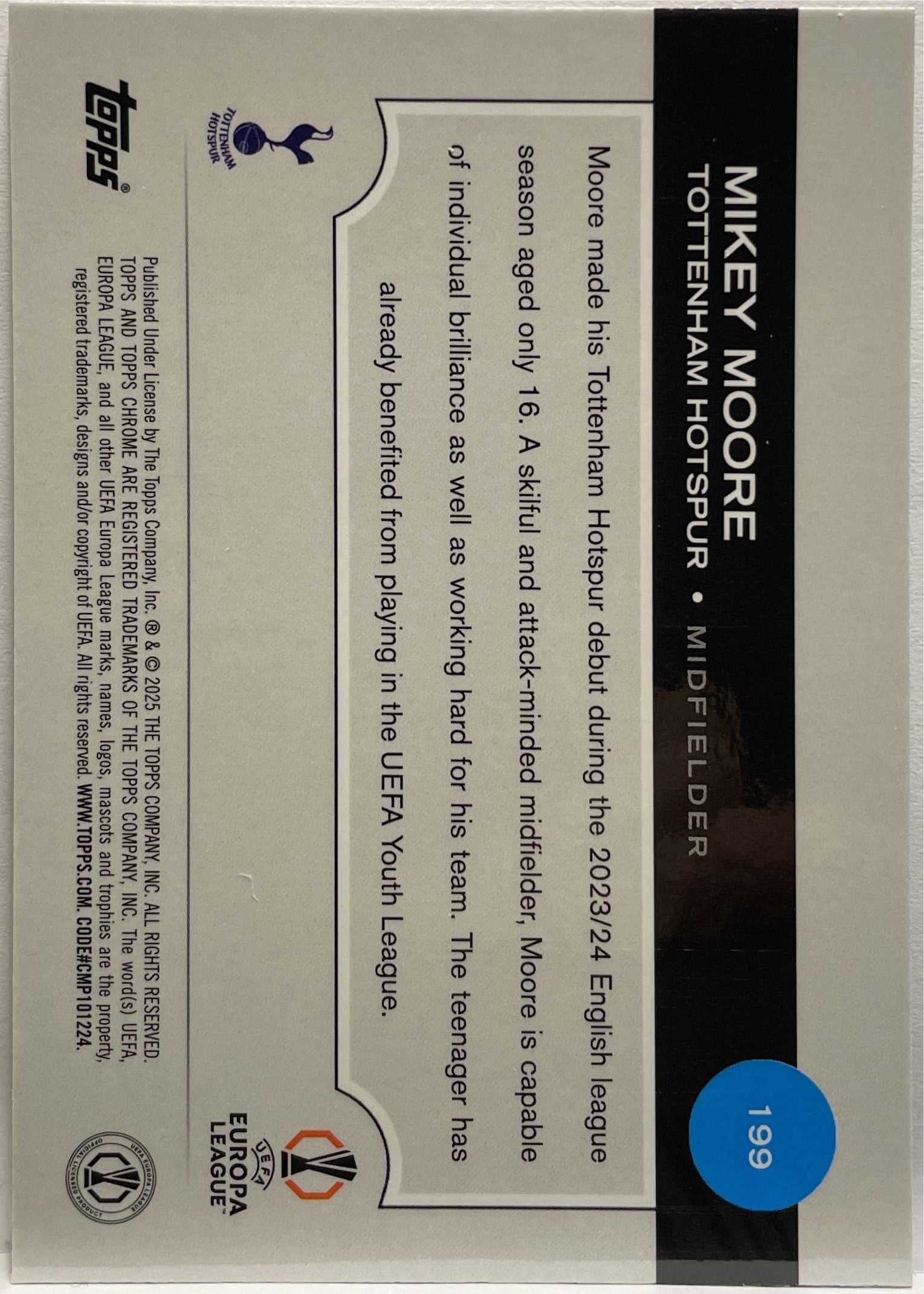 Mikey Moore 162/175 Rookie Pink RayWave Topps Chrome UCC 2024/25 Tottenham Hotspur