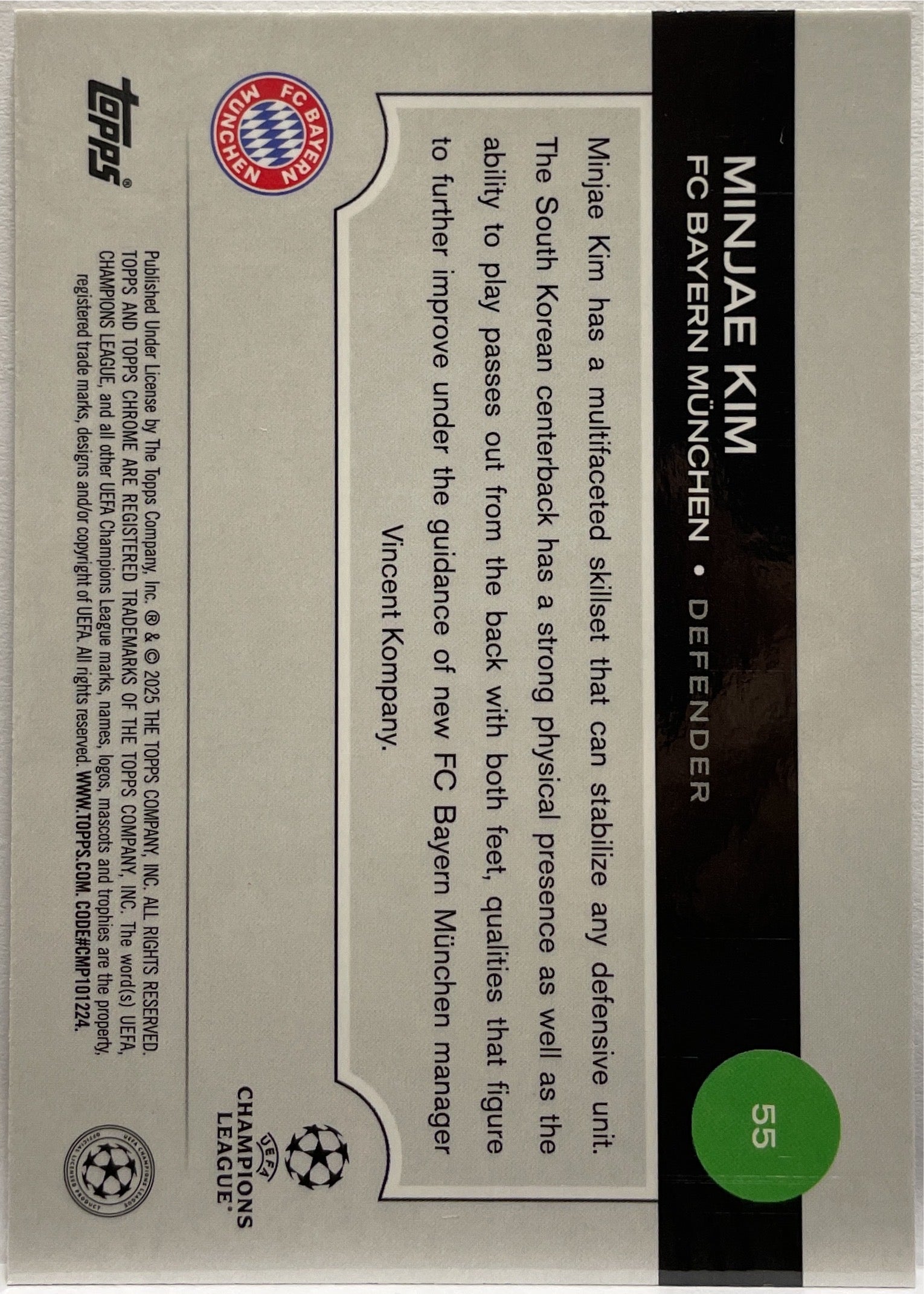 Minjae Kim 50/299 Violet Topps Chrome UCC 2024/25 FC Bayern Munchen