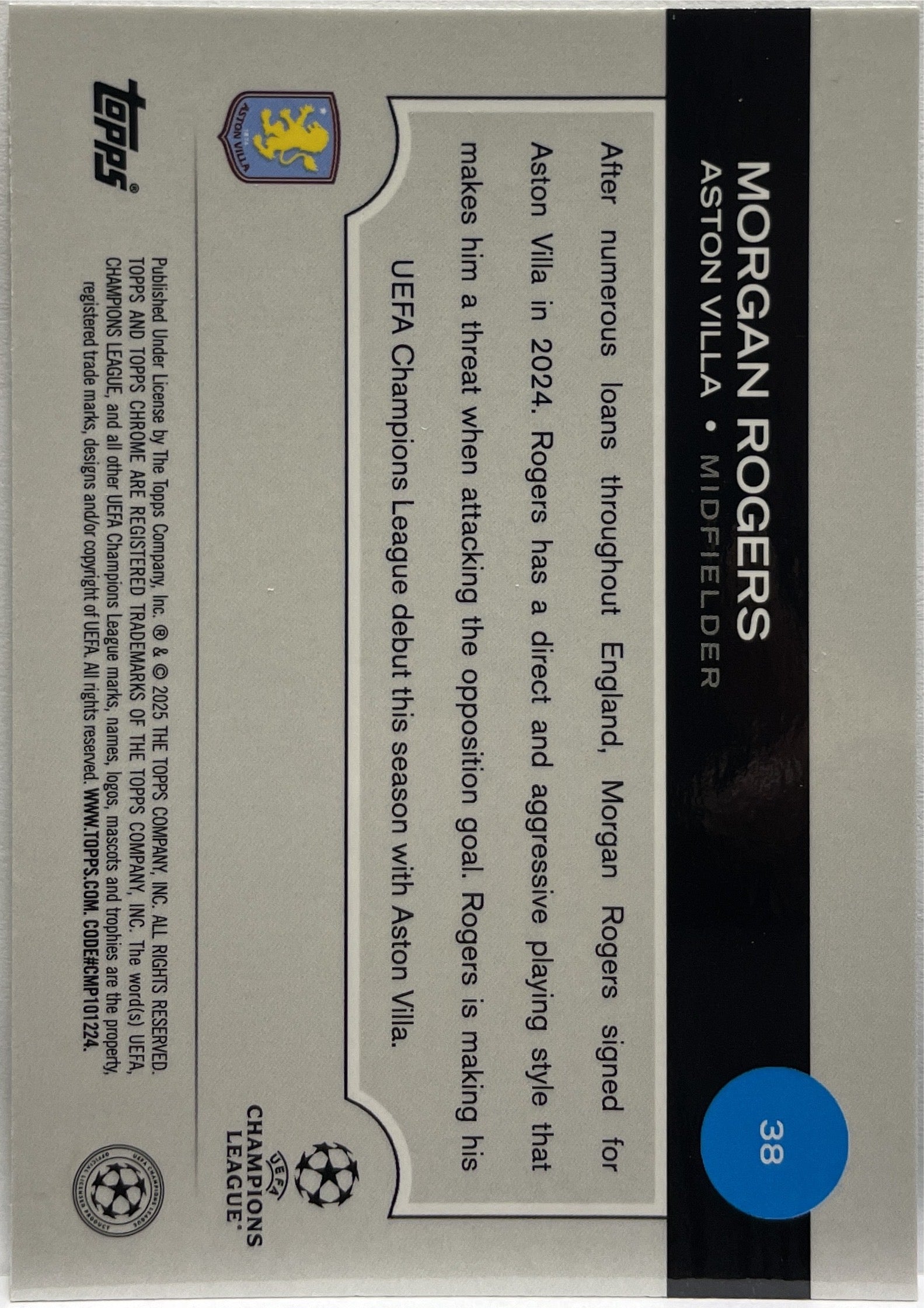 Morgan Rogers 58/199 Future Stars Aqua Topps Chrome UCC 2024/25 Aston Villa