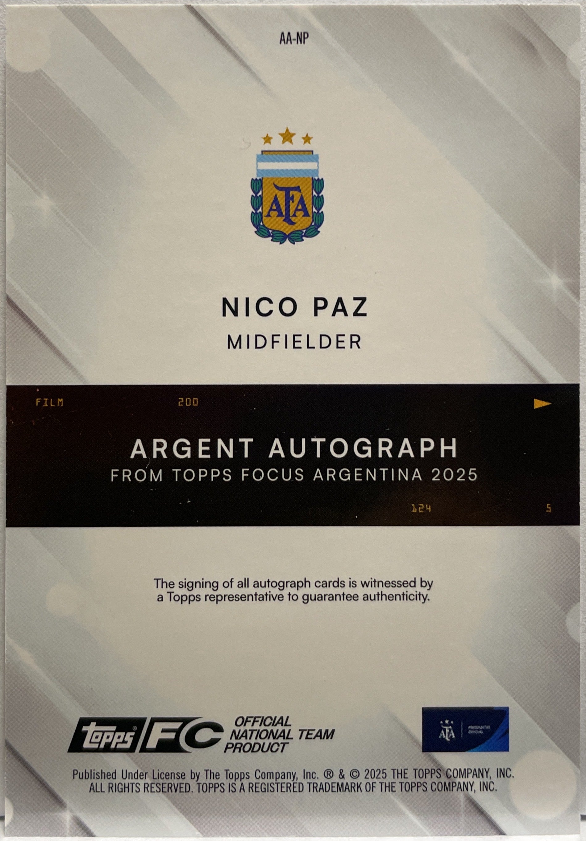 Nico Paz 19/99 Autograph Blue Topps Focus Argentina 2025