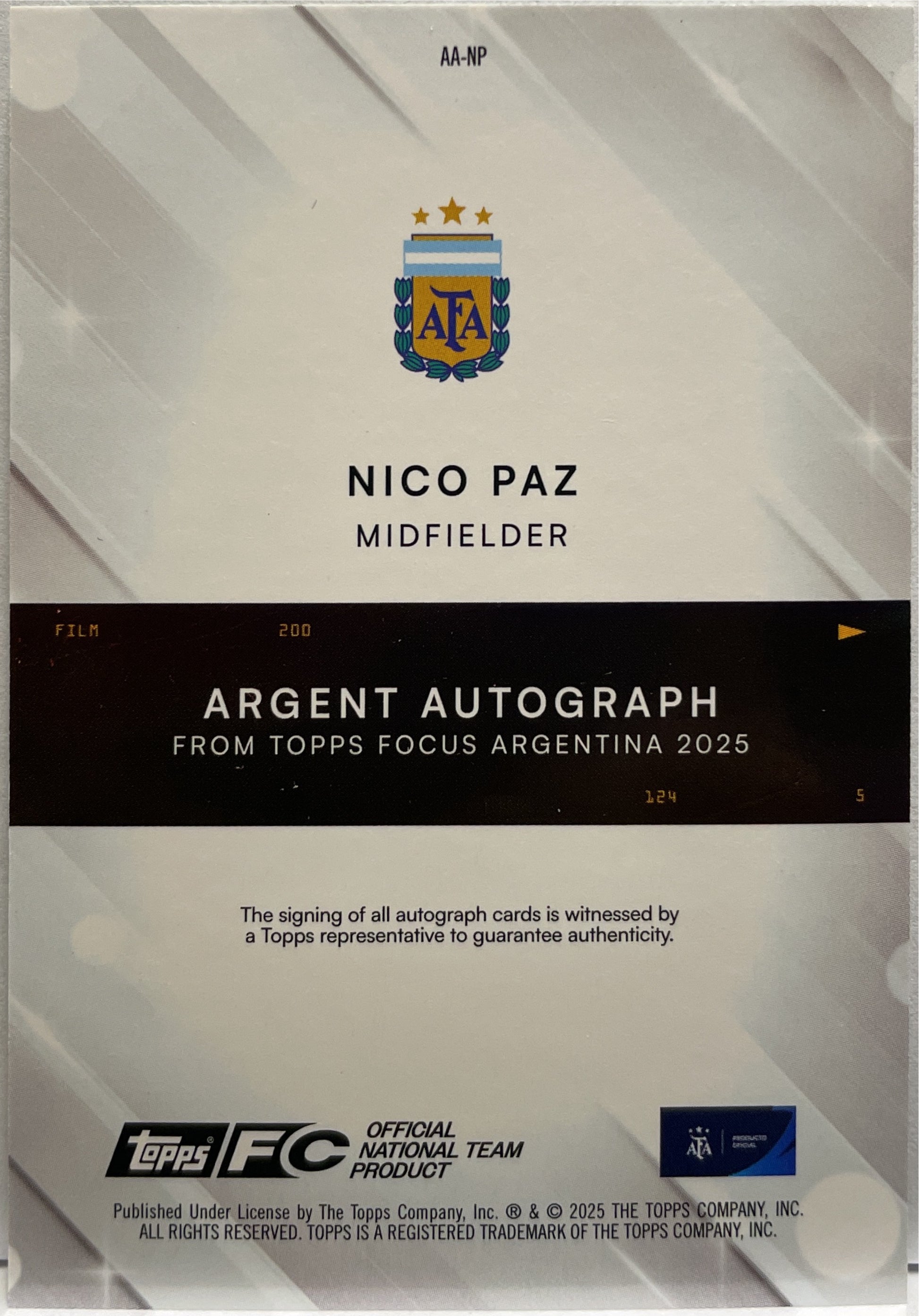 Nico Paz 33/75 Autograph Green Topps Focus Argentina 2025