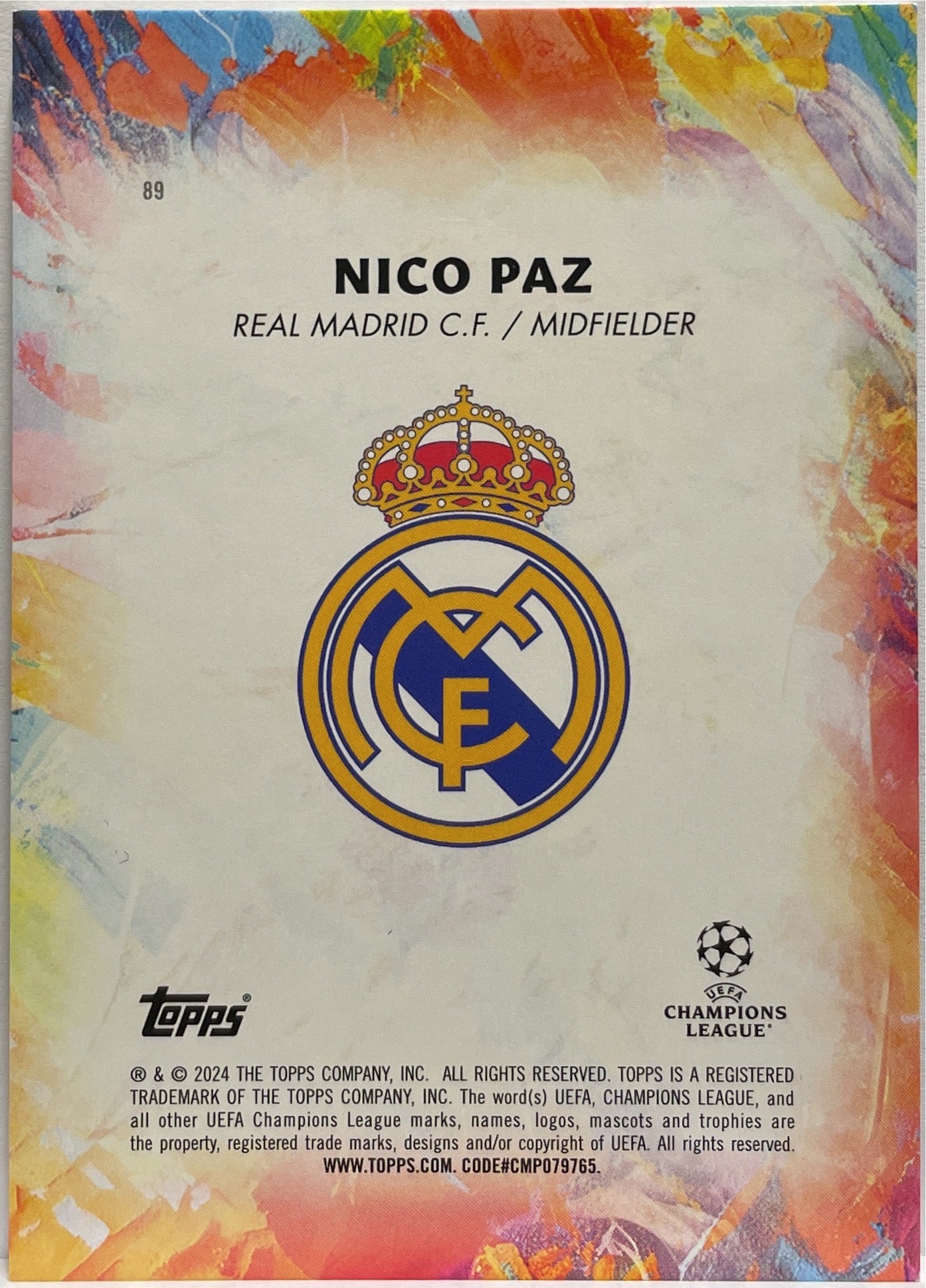Nico Paz 76/99 Rookie Emerging Stars Green Topps Inception 2023/24 Real Madrid