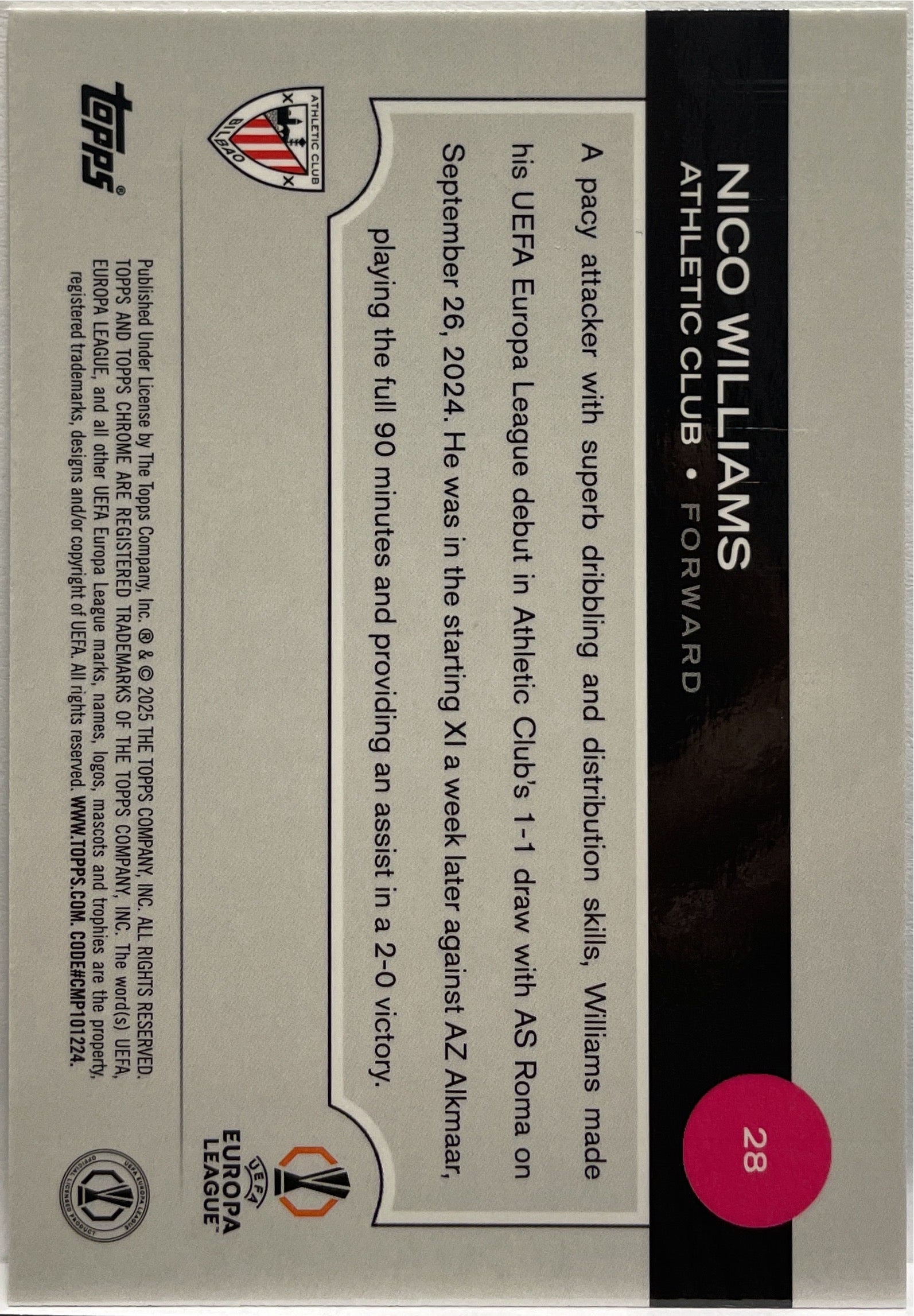 Nico Williams 109/199 Aqua Topps Chrome UCC 2024/25 Athletic Club
