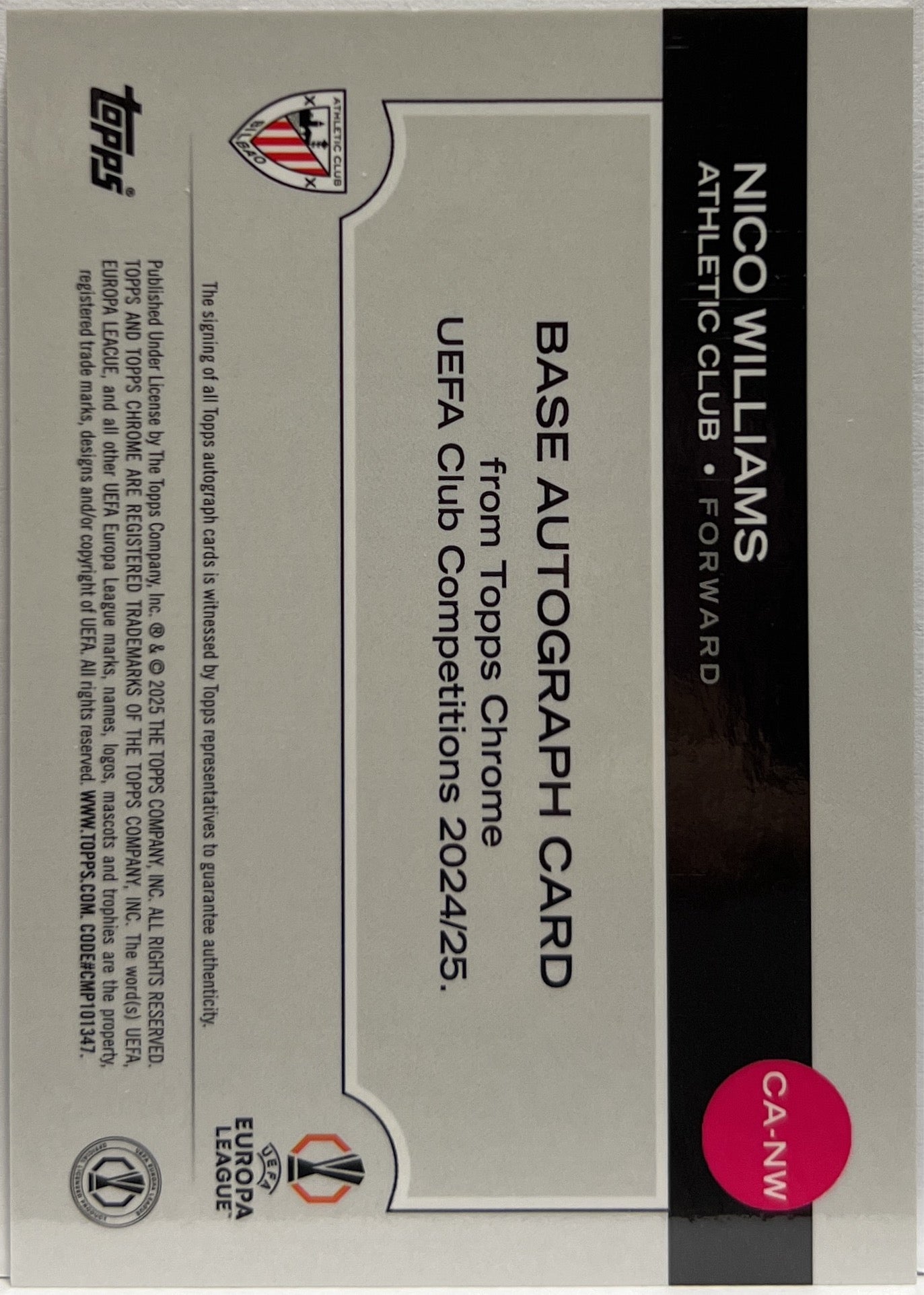 Nico Williams Autograph Topps Chrome UCC 2024/25 Athletic Club