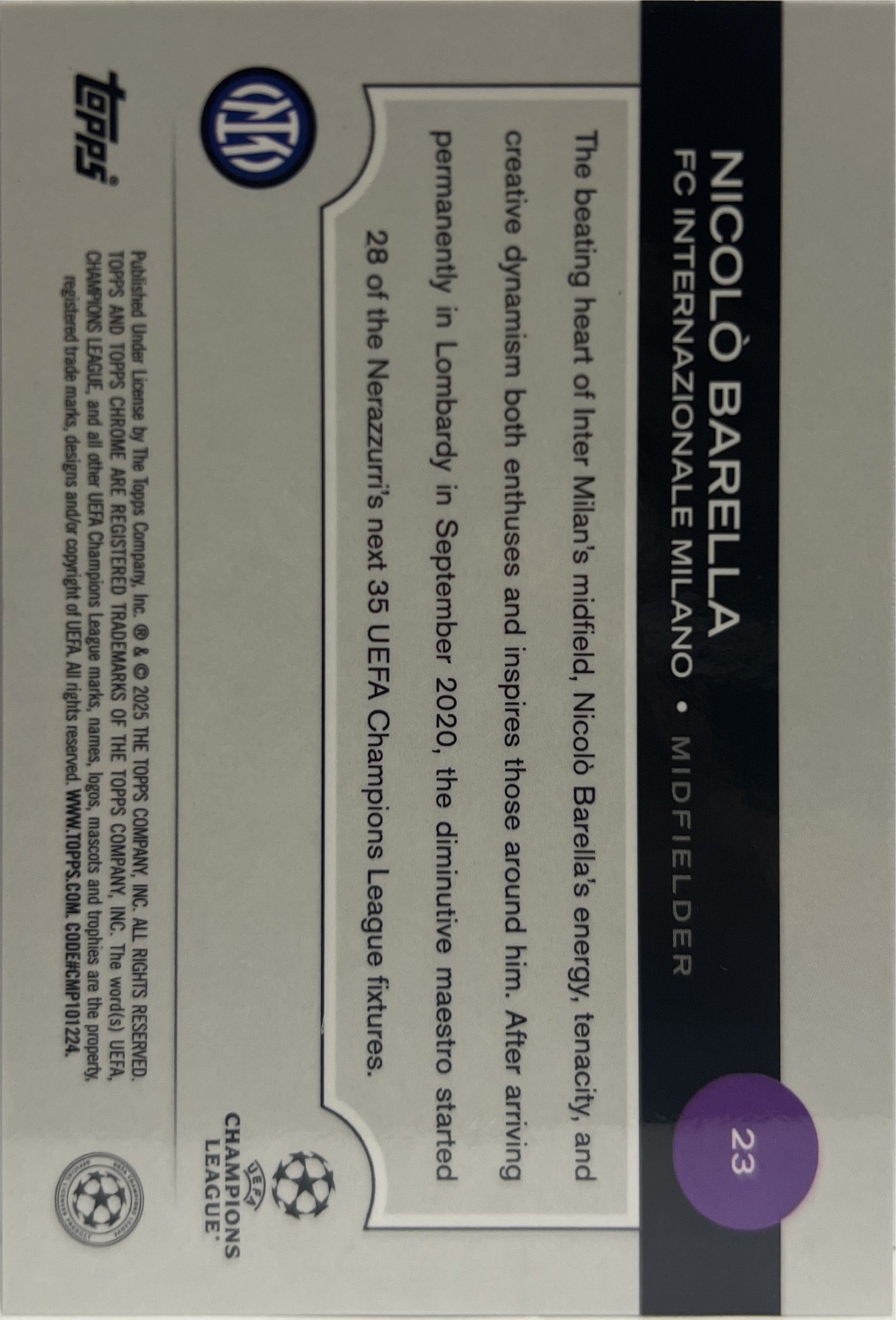 Nicolo Barella 2/50 Gold Lava Topps Chrome UCC 2024/25 FC Internazionale Milano