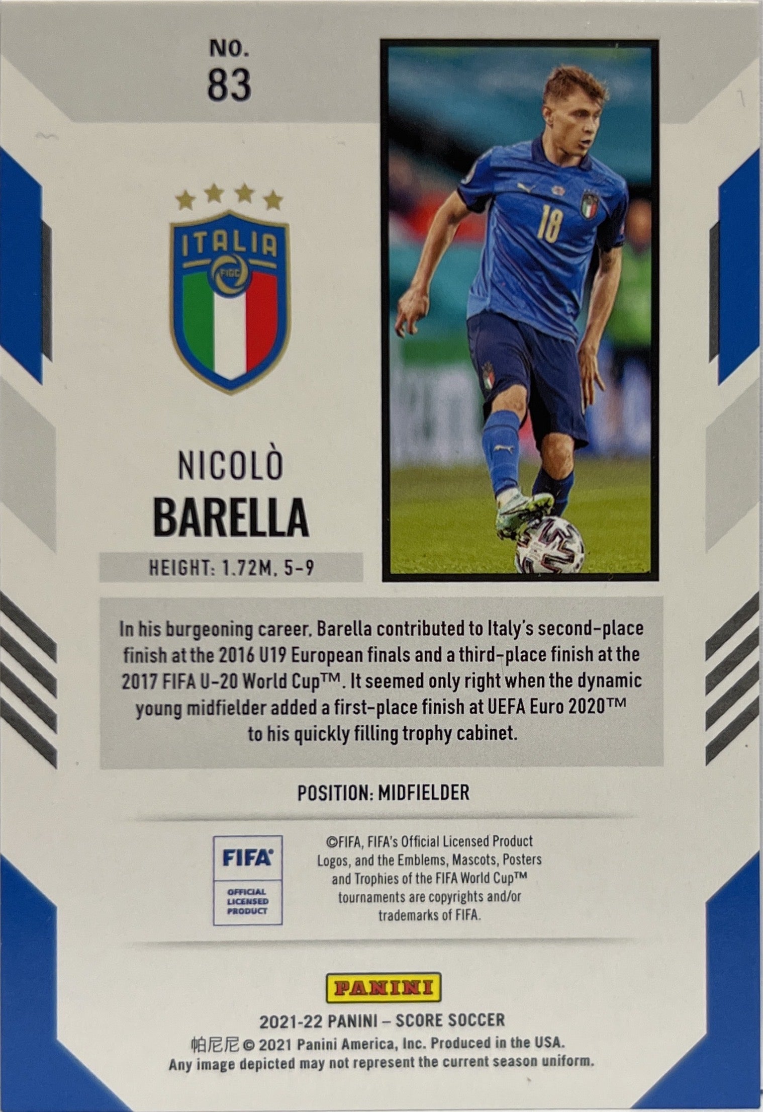 Nicolo Barella 27/49 Blue Score Fifa 2021/22 Italy