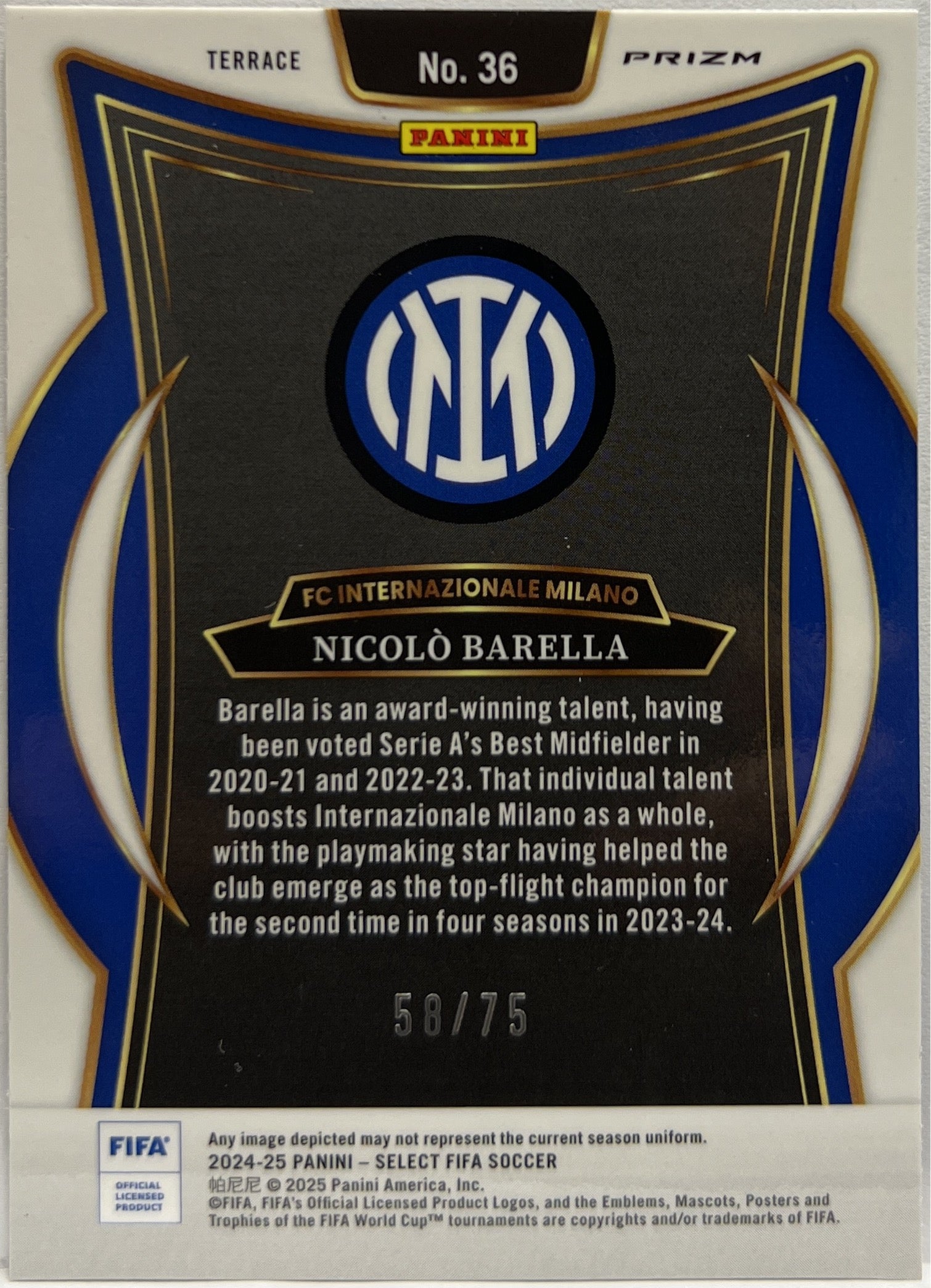 Nicolo Barella 58/75 Terrace Bronze Checker Select Fifa 2024/25 FC Internazionale Milano