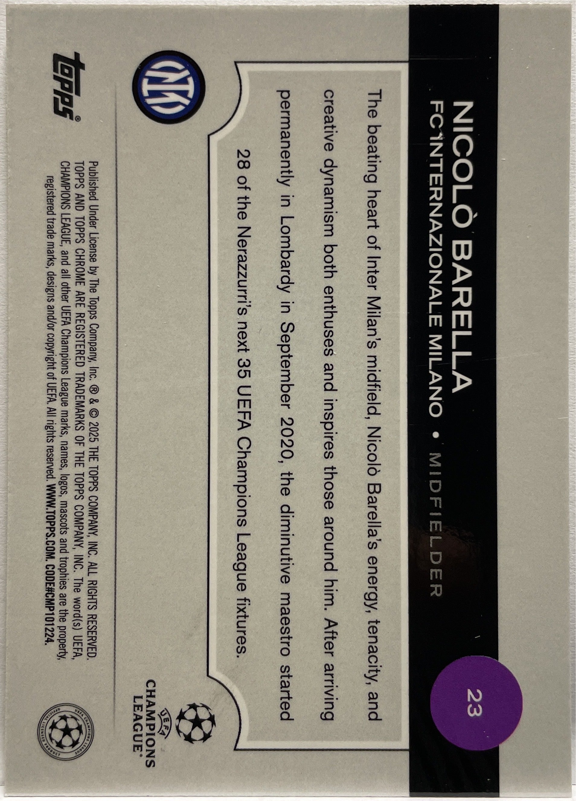 Nicolo Barella 6/225 Night Vision RayWave Topps Chrome UCC 2024/25