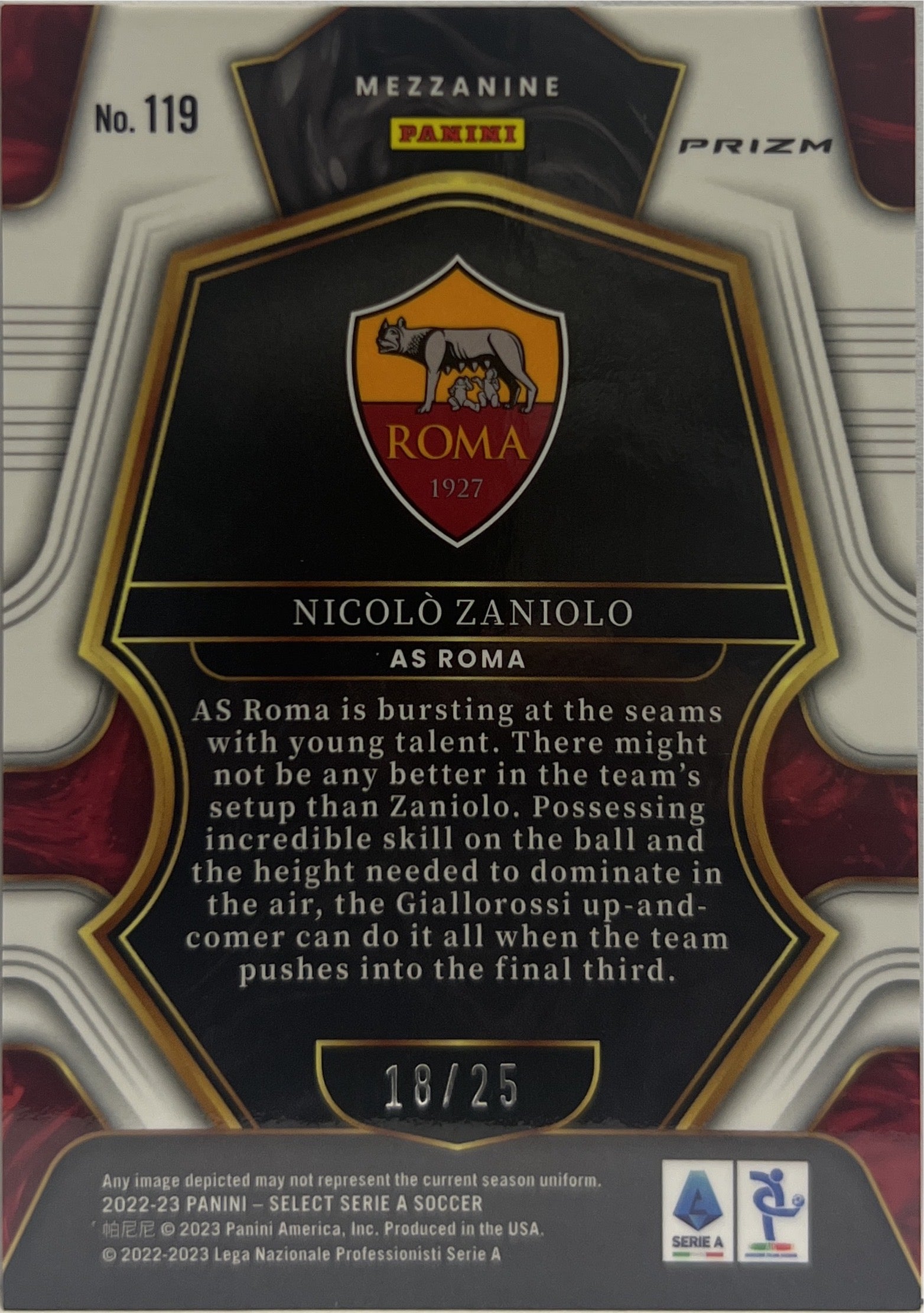 Nicolo Zaniolo 18/25 Mezzanine Tye Die Select Serie A 2022/23