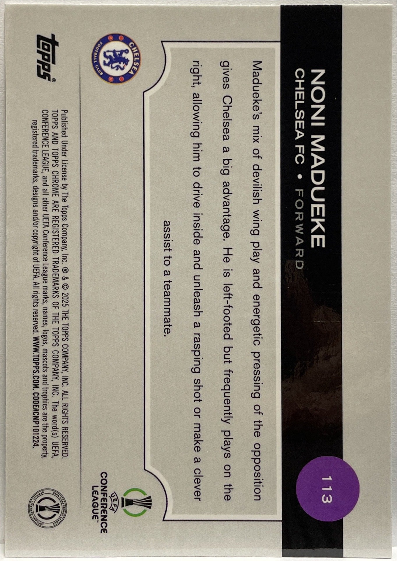 Noni Madueke 30/99 Green Topps Chrome UCC 2024/25 Chelsea FC