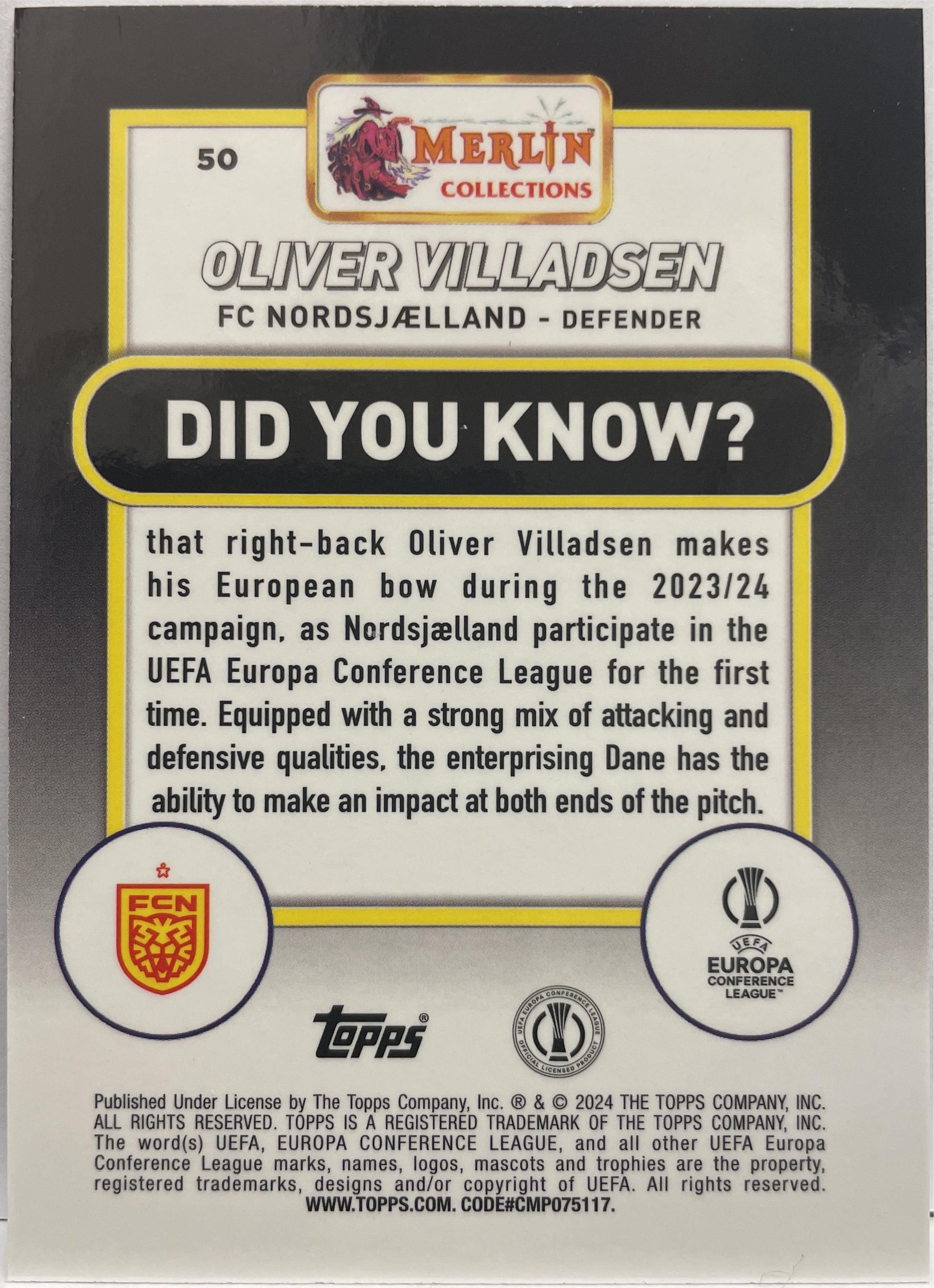 Oliver Villadsen 61/75 Rookie Blue Topps Chrome Merlin UCC 2023/24