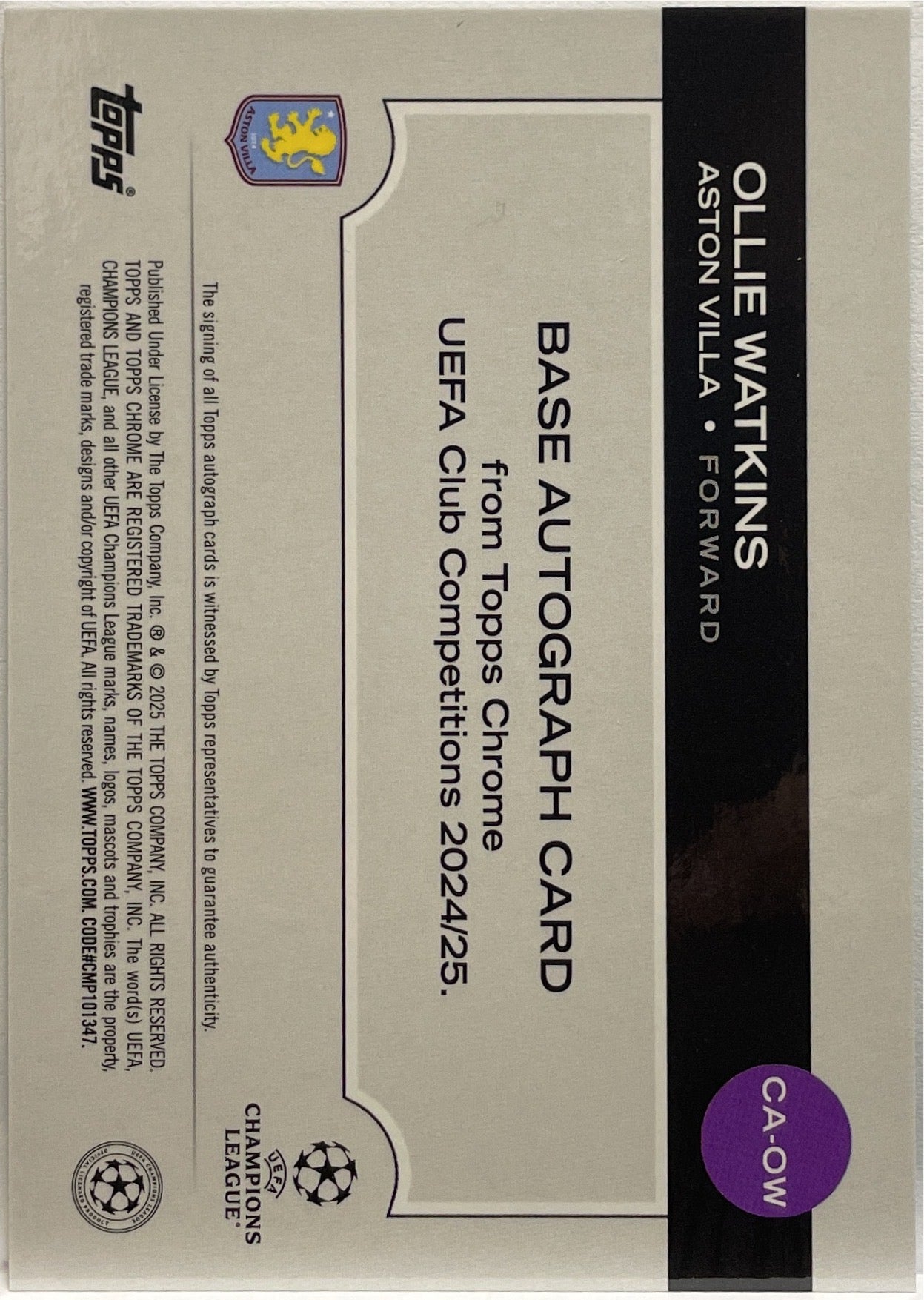 Ollie Watkins 56/199 Autograph Aqua Lava Topps Chrome UCC 2024/25 Aston Villa