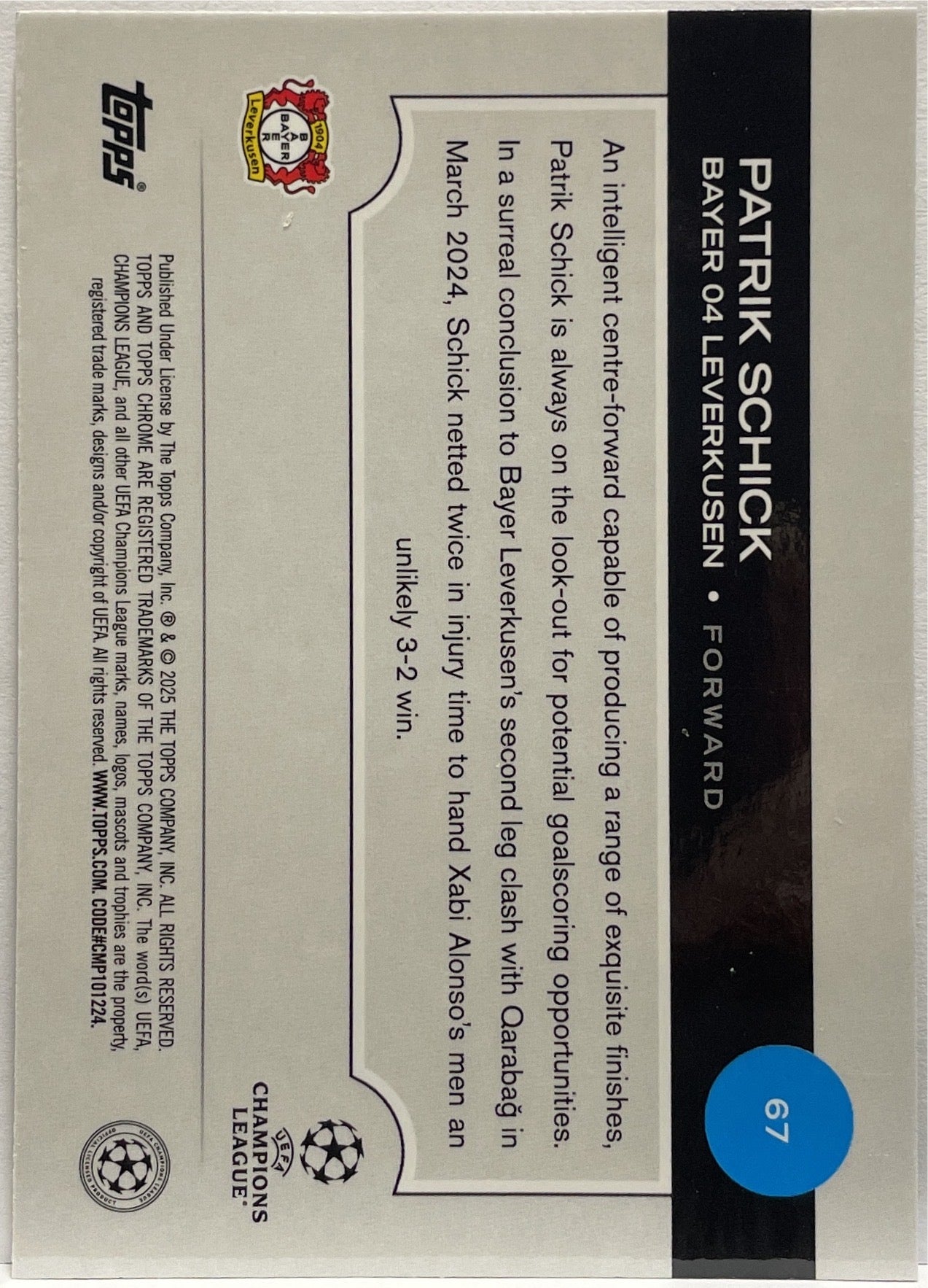 Patrik Schick 57/75 Magenta Topps Chrome UCC 2024/25 Bayer 04 Leverkusen