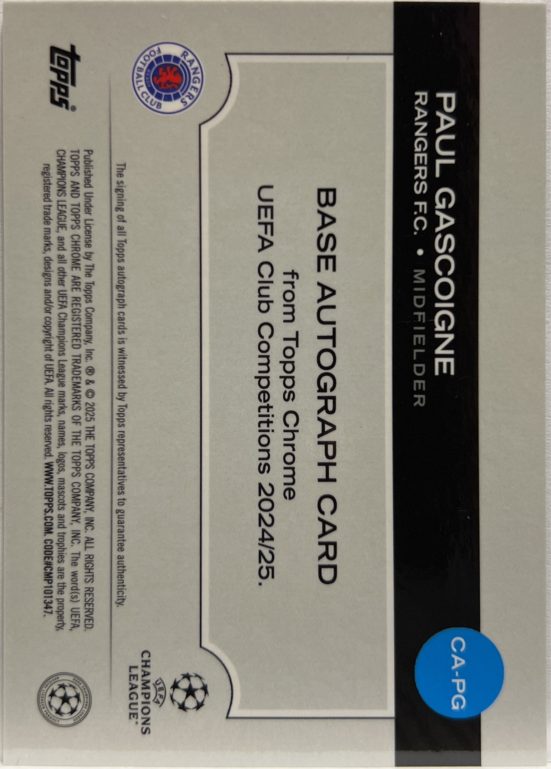 Paul Gascoine 31/52 Autograph Toppsfractor Topps Chrome UCC 2024/25 Rangers FC