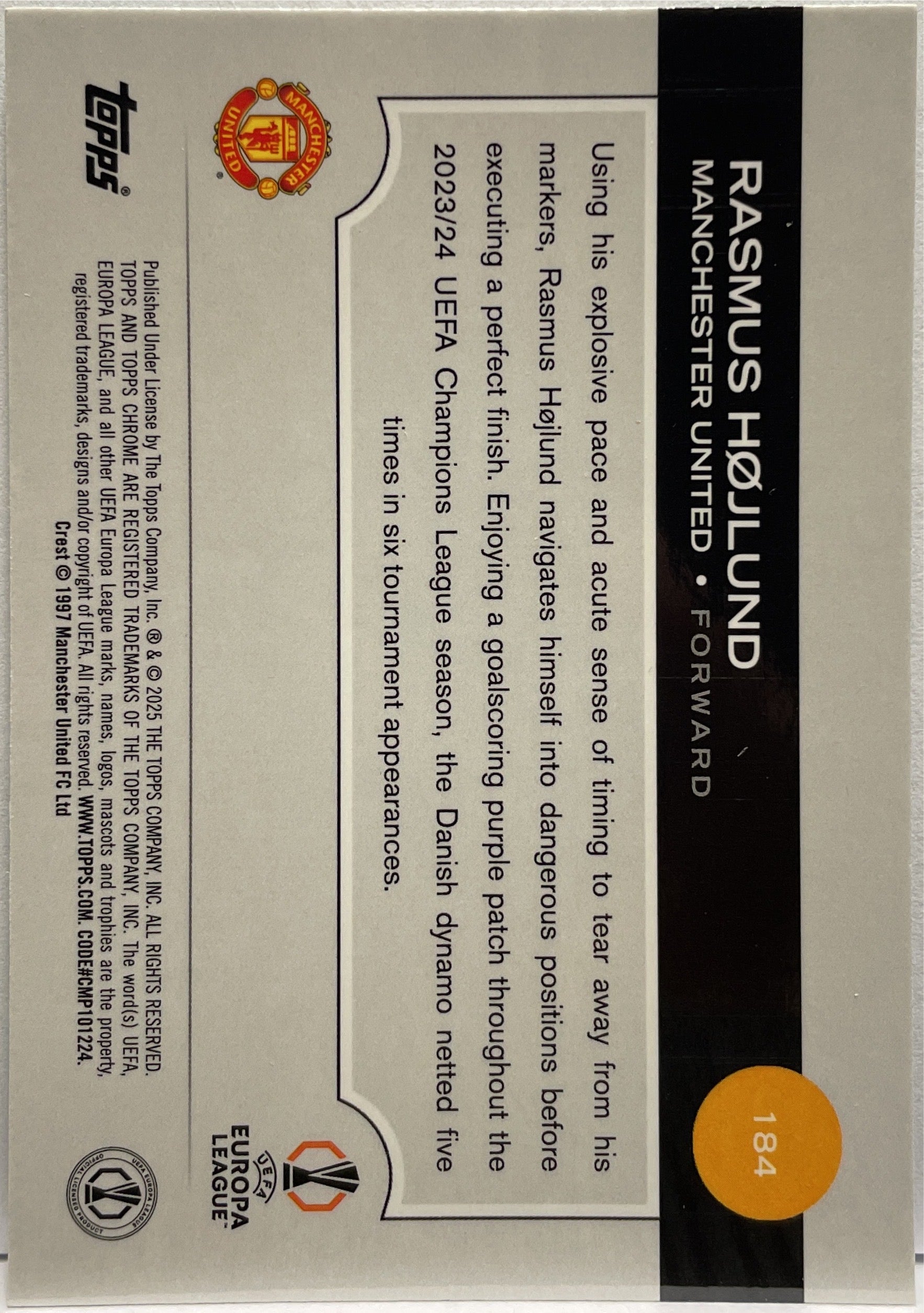 Rasmus Hojlund 70/199 Aqua Topps Chrome UCC 2024/25 Manchester United