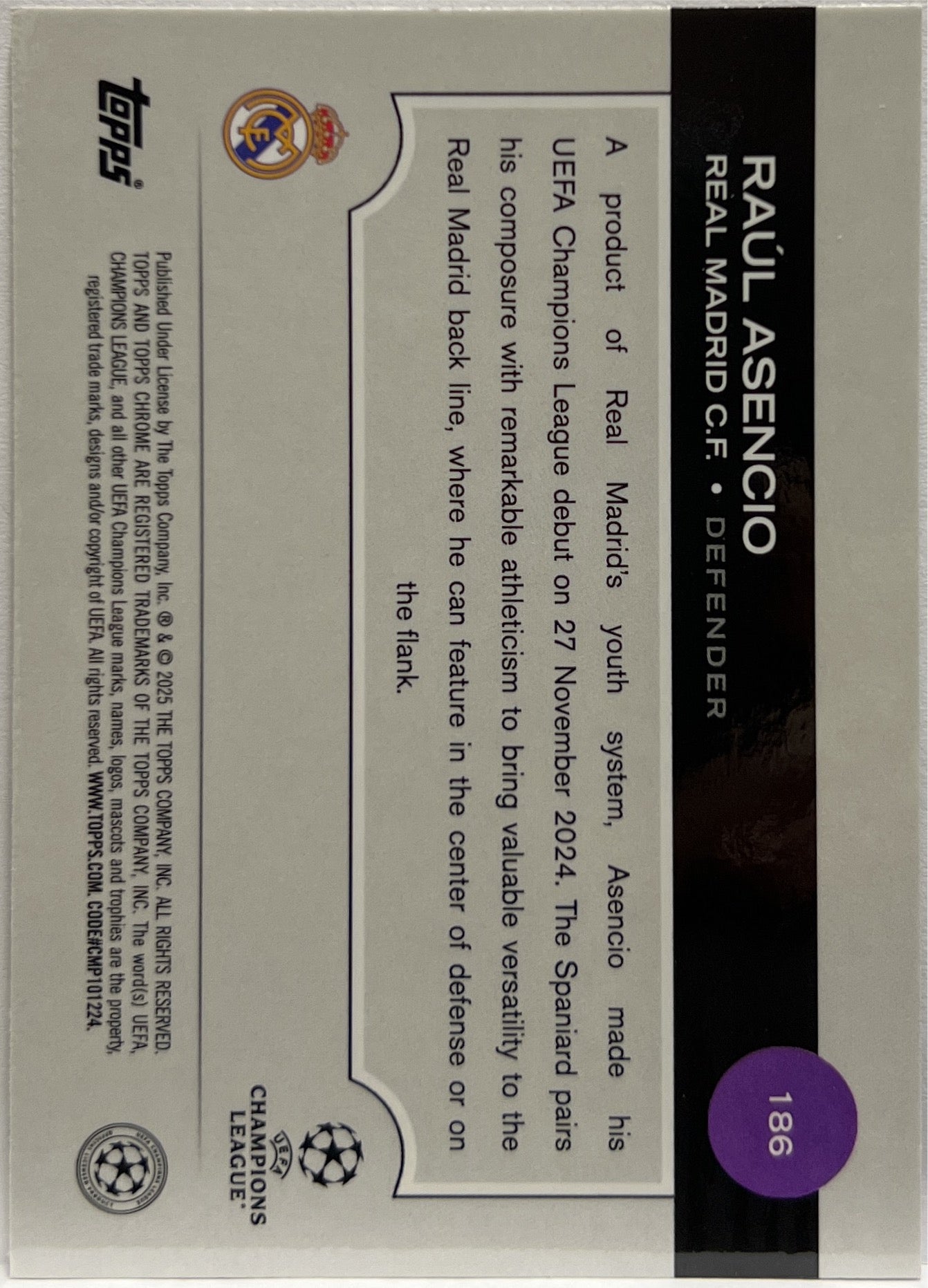 Raul Asencio 14/75 Rookie Magenta Topps Chrome UCC 2024/25 Real Madrid