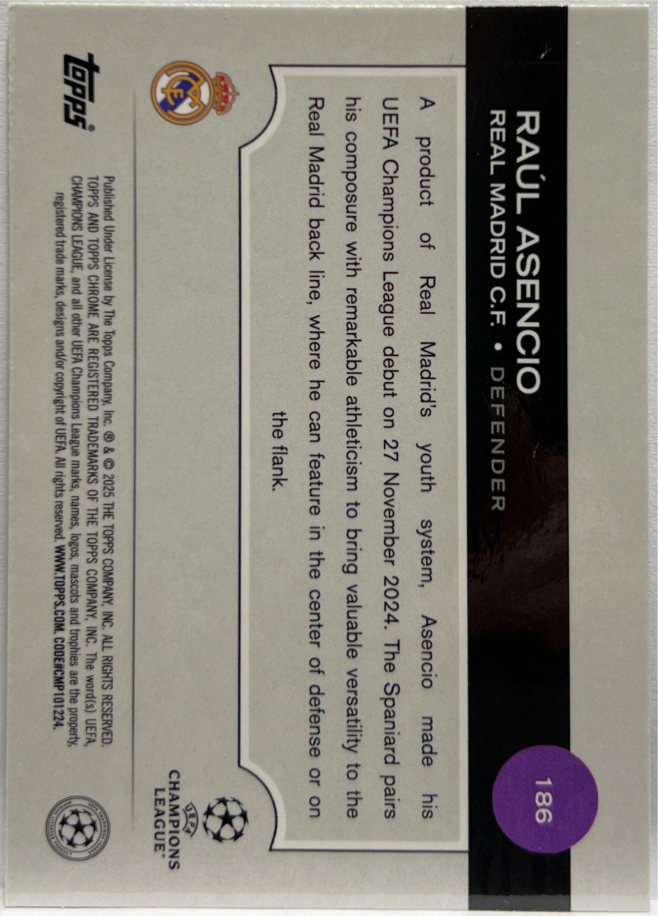 Raul Asencio 99/99 Rookie Green Lava Topps Chrome UCC 2024/25
