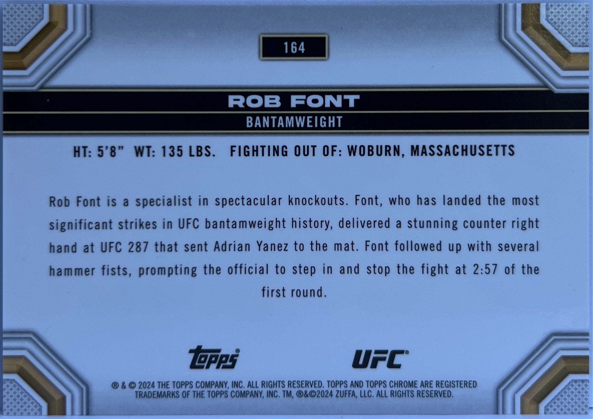 Rob Font 128/199 Aqua Topps Chrome UFC 2024 Bantamweight