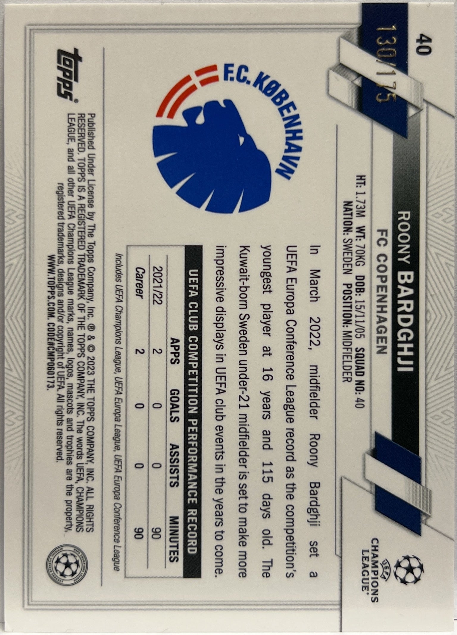 Roony Bardghji 130/175 Rookie Pink Mini Diamond Topps Chrome UCC 2022/23