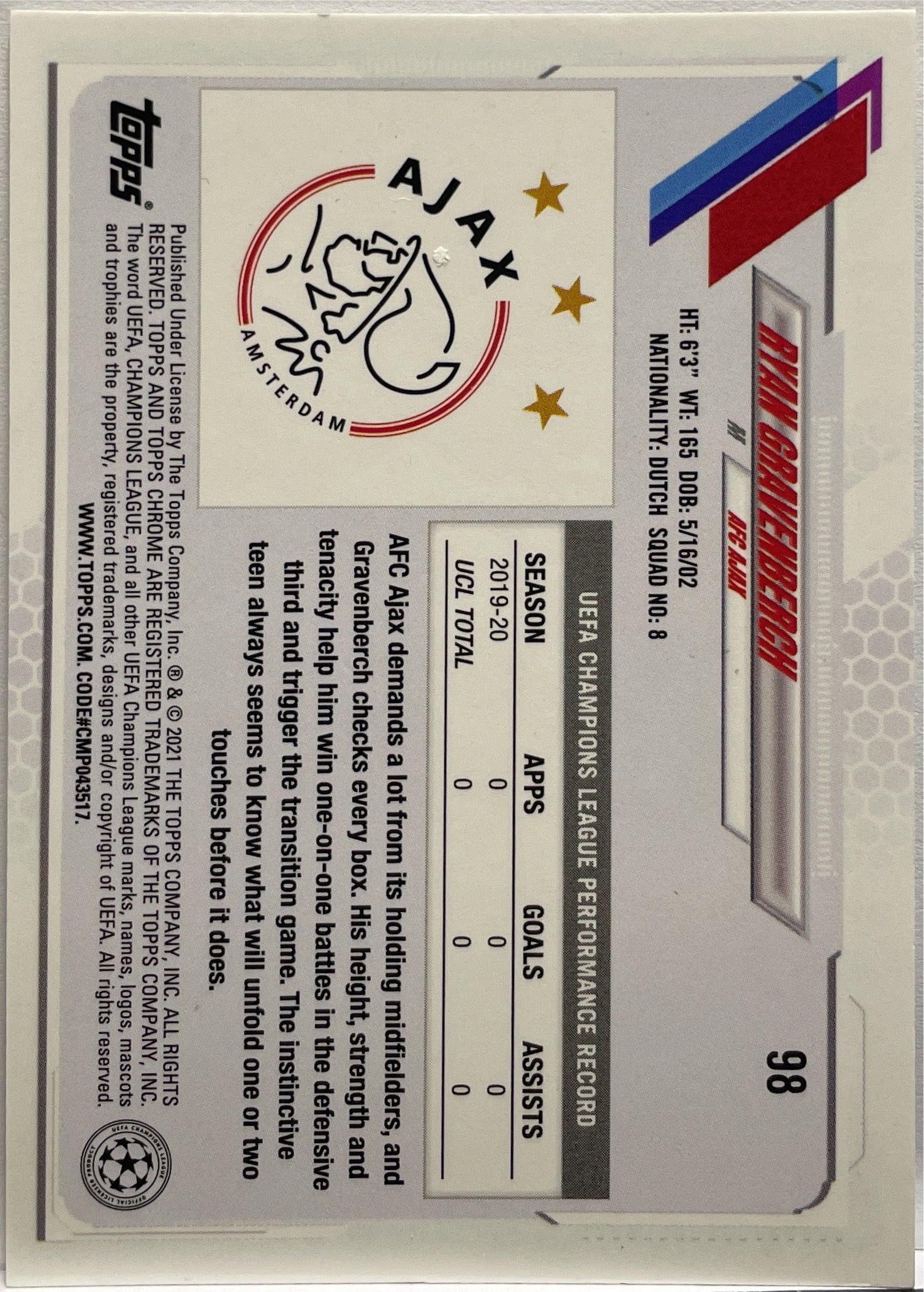 Ryan Gravenberch Rookie Refractor Topps Chrome UCL 2020/21 AFC Ajax
