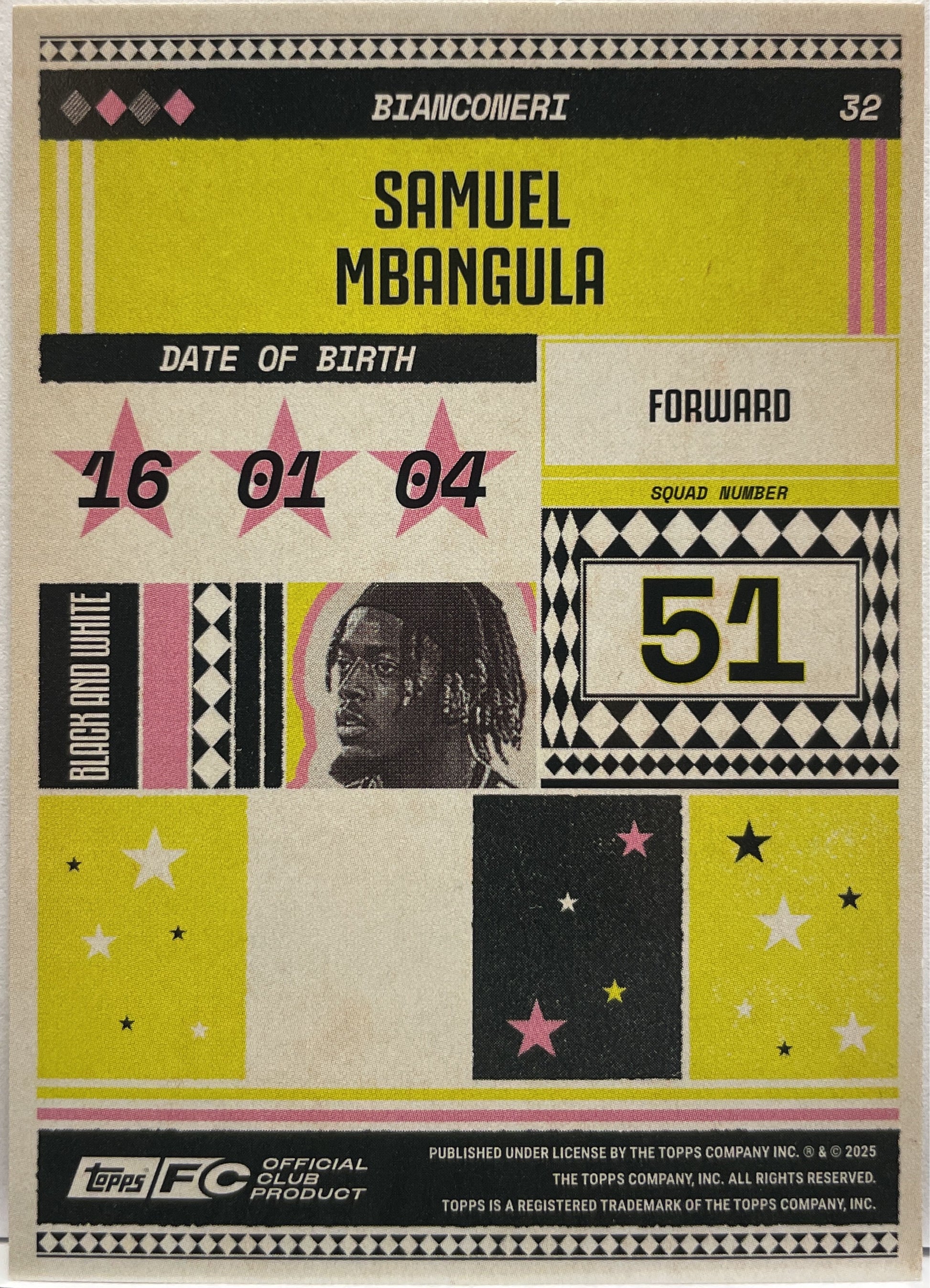 Samuel Mbangula 22/25 Rookie Presents Topps Juventus Premium Team Set 2024/25