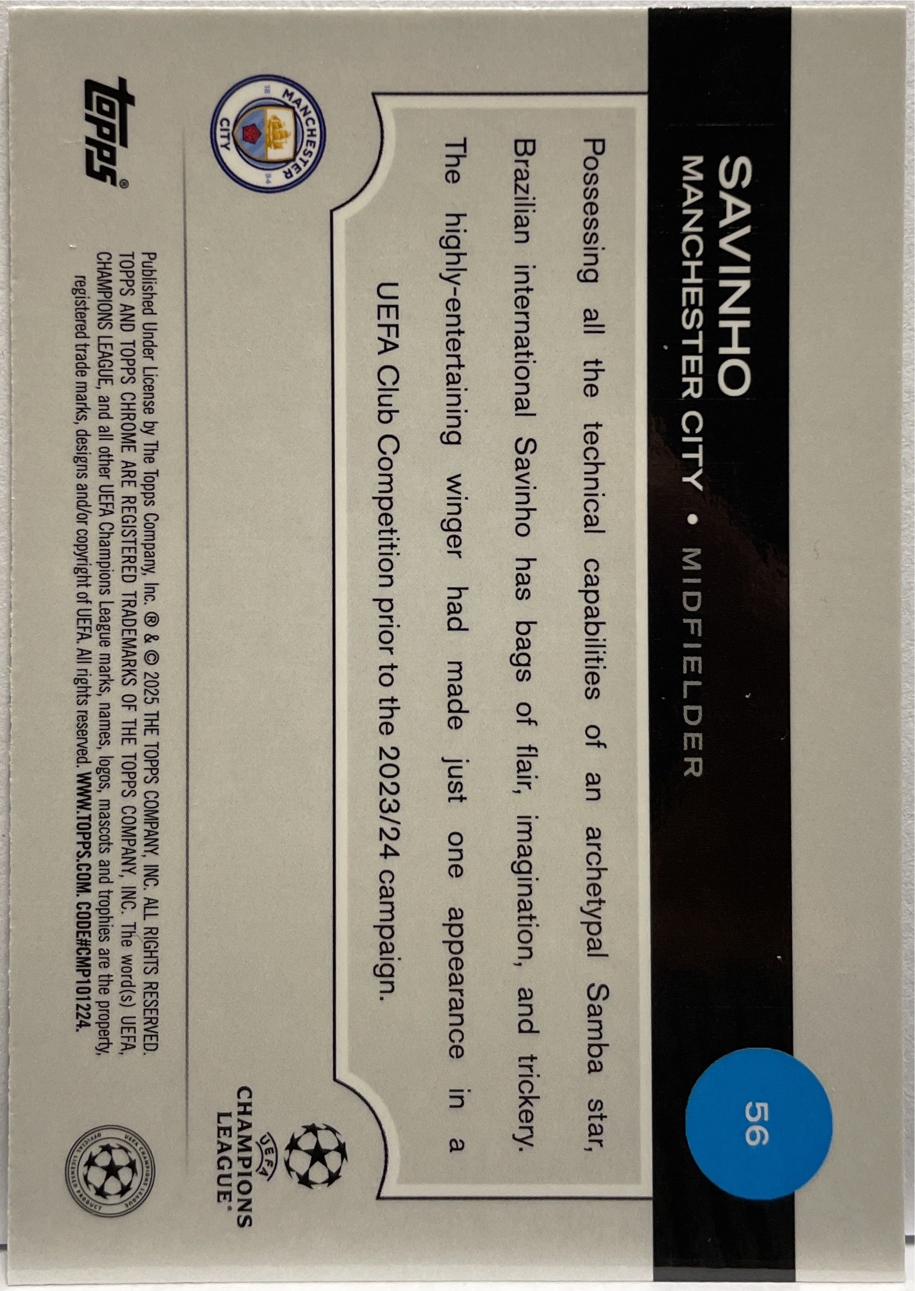 Savinho 16/150 Blue Topps Chrome UCC 2024/25 Manchester City
