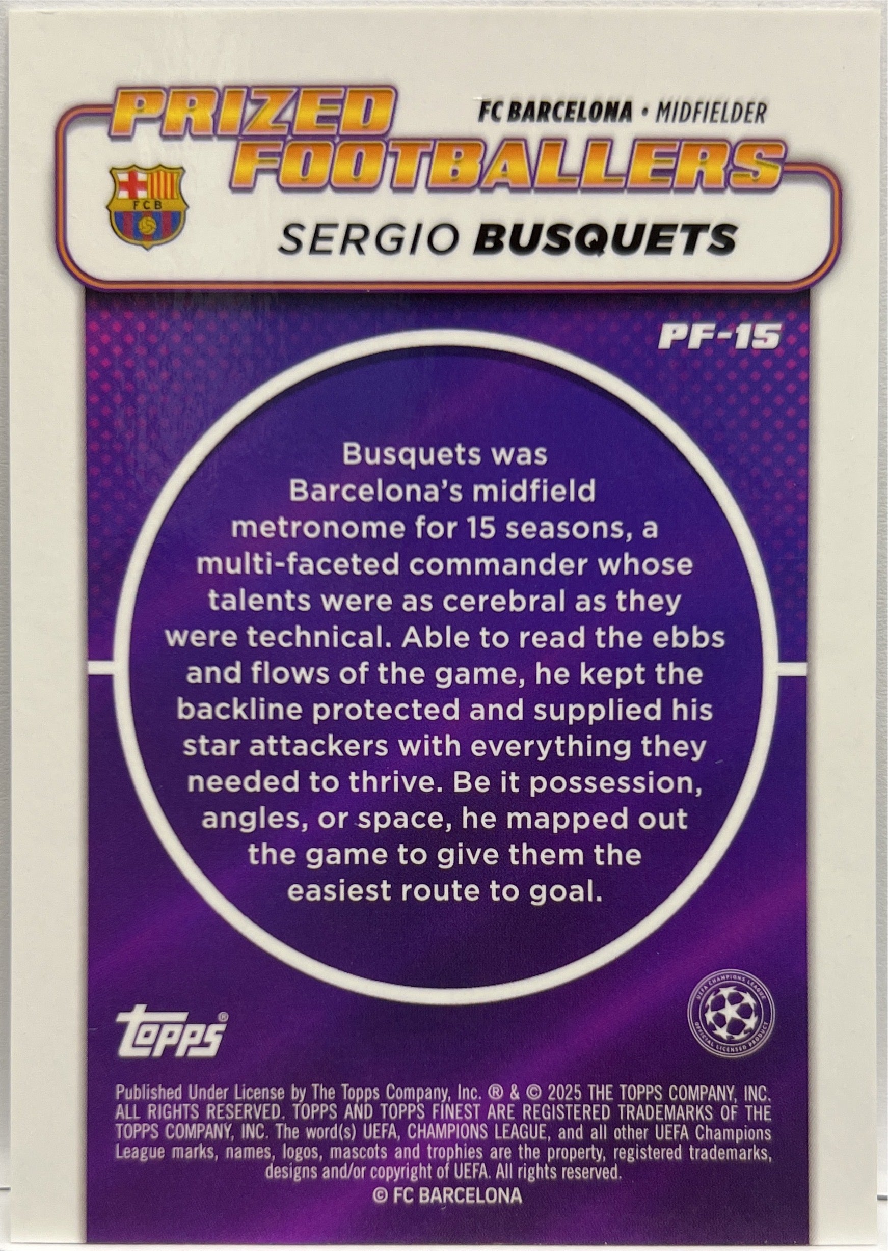 Sergio Busquets 39/50 Prized Footballers Gold Topps Finest UCC 2024/25 FC Barcelona