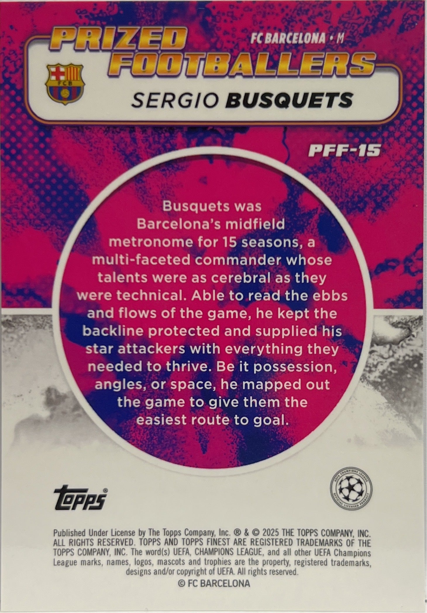 Sergio Busquets Prized Footballers Fusion Variation Purple Red Topps Finest UCC 2024/25 FC Barcelona