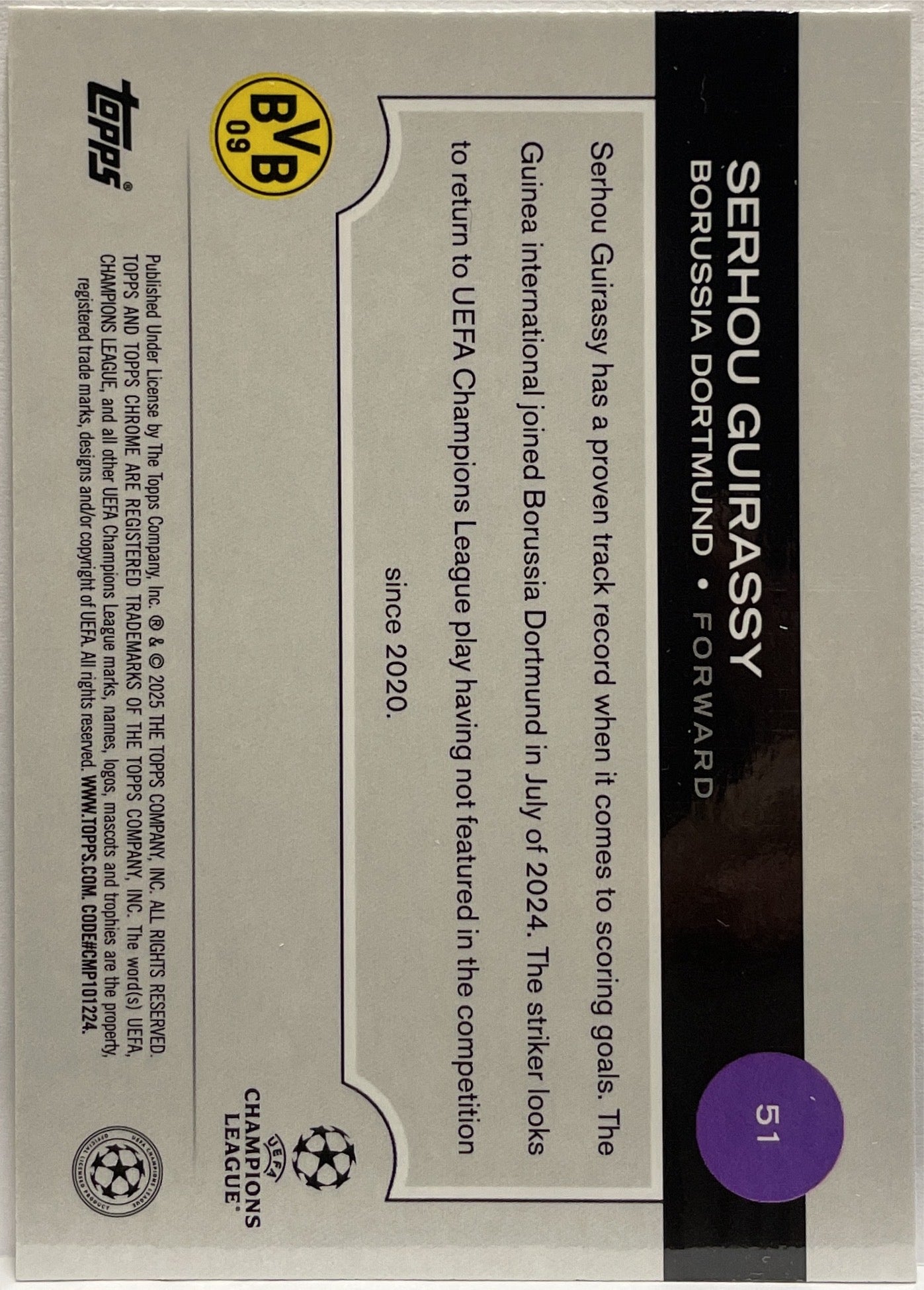 Serhou Guirassy 54/75 Magenta Topps Chrome UCC 2024/25 Borussia Dortmund