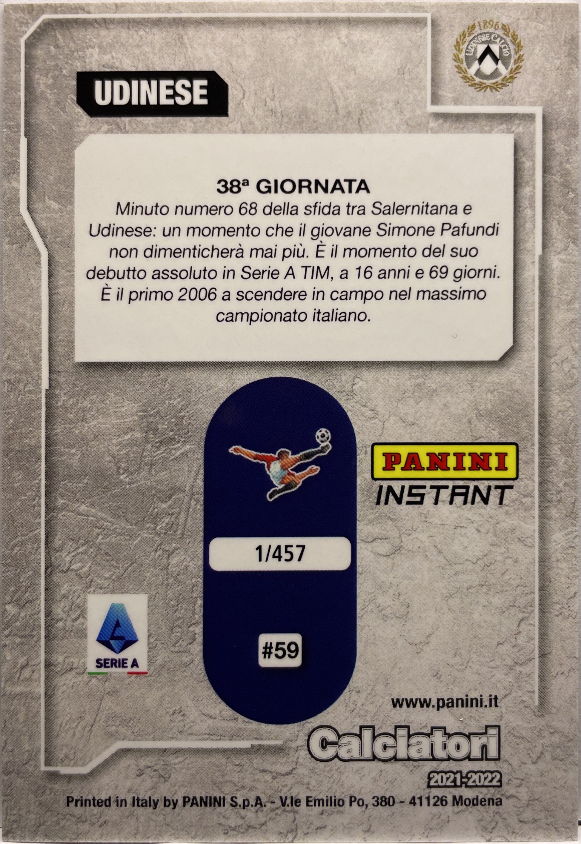 Simone Pafundi Panini Instant 2021/22 Udinese Calcio