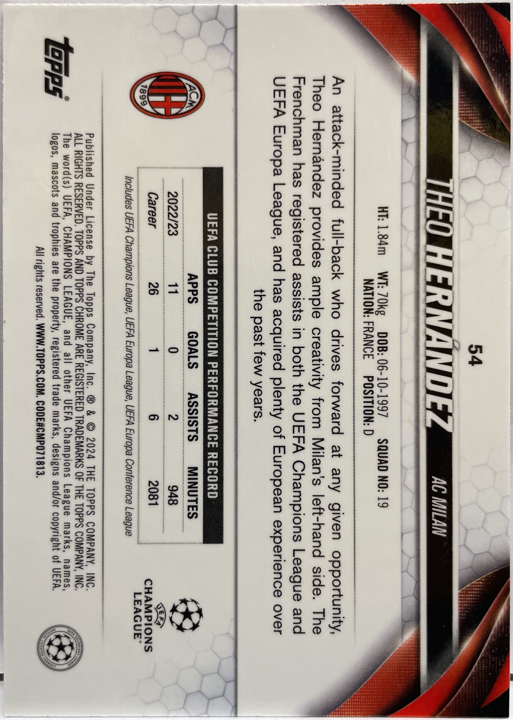 Theo Hernandez 150/150 Blue Geometric Topps Chrome UCC 2023/24 AC Milan