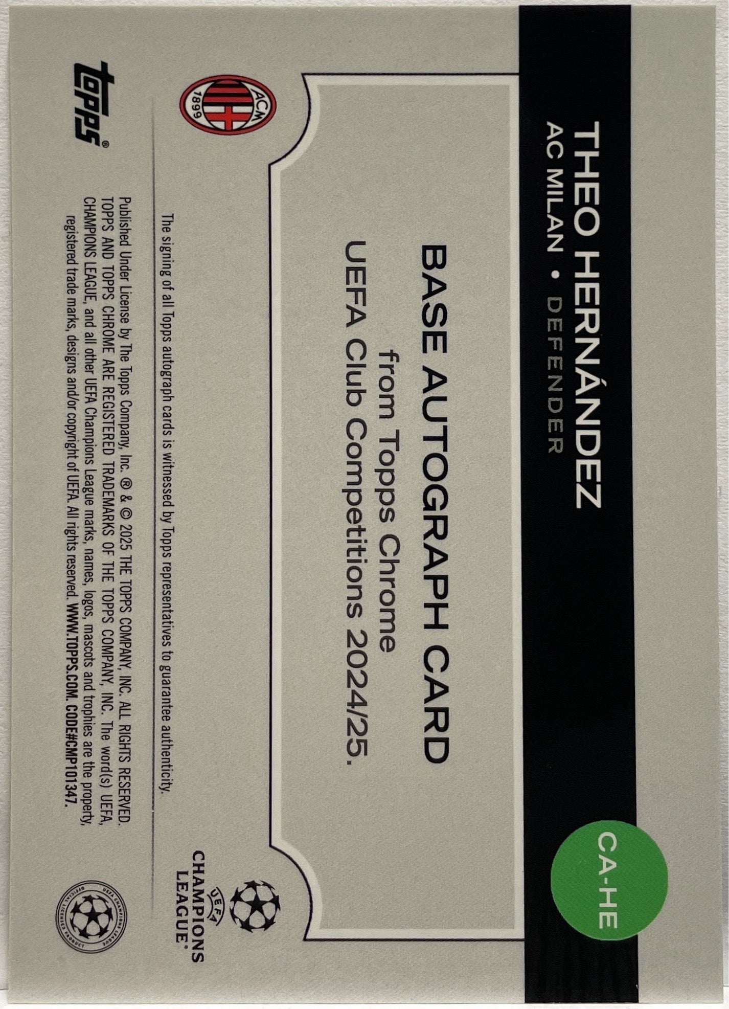 Theo Hernandez 7/10 Autograph Black Geometric Topps Chrome UCC 2024/25 AC Milan