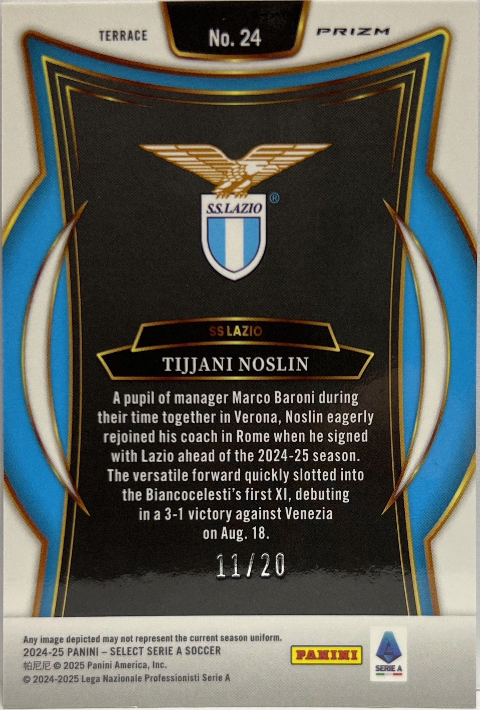 Tijjani Noslin 11/20 Rookie Terrace White Select Serie A 2024/25 SS Lazio
