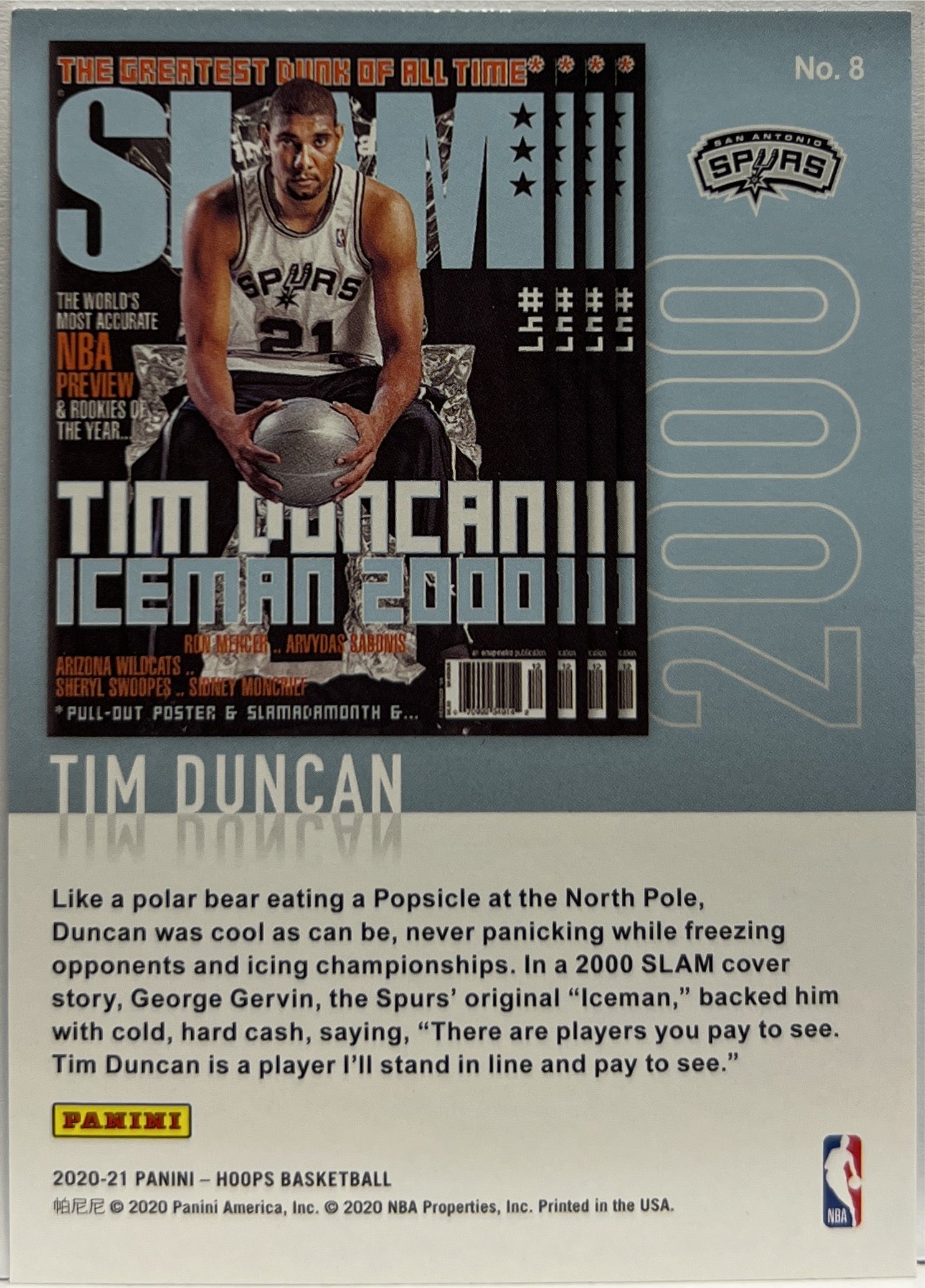 Tim Duncan Iceman 2000 Hoops Basketball NBA 2020/21 Spurs