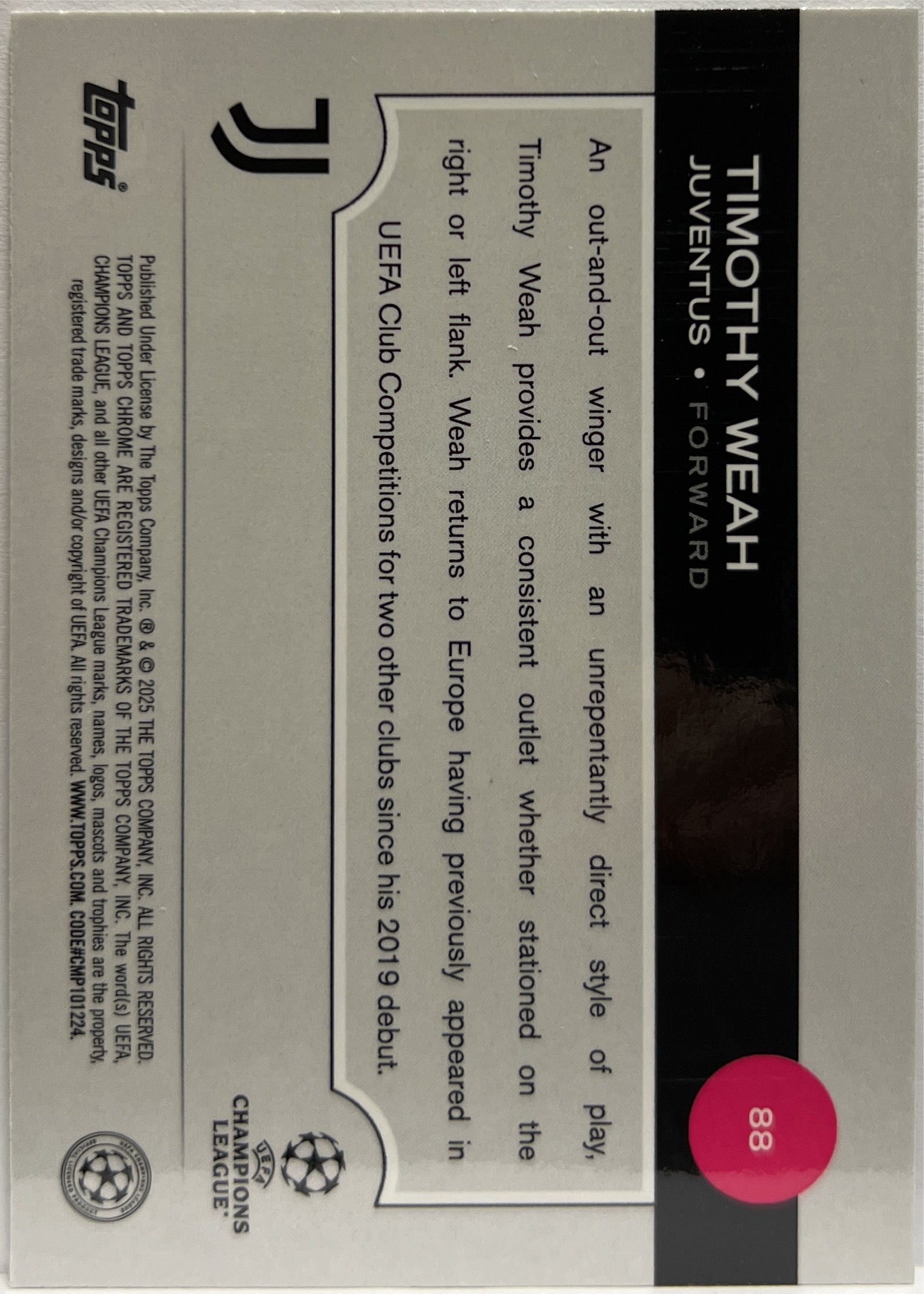 Timothy Weah 192/225 Night Vision RayWave Topps Chrome UCC 2024/25 Juventus