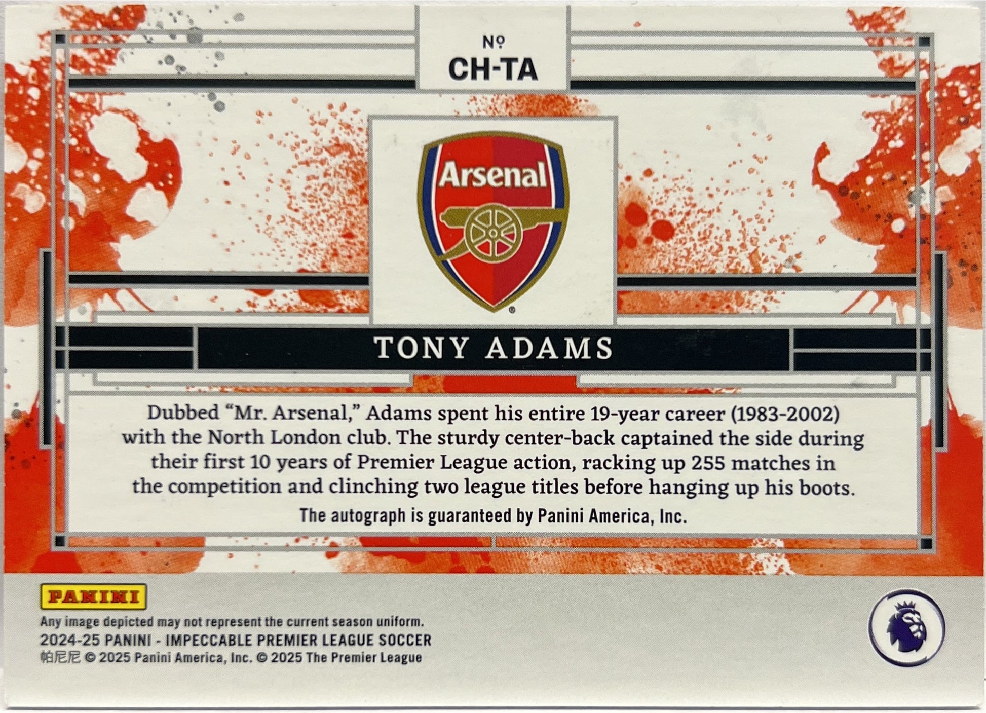 Tony Adams 21/86 Autograph Club History Impeccable Premier League 2024/25