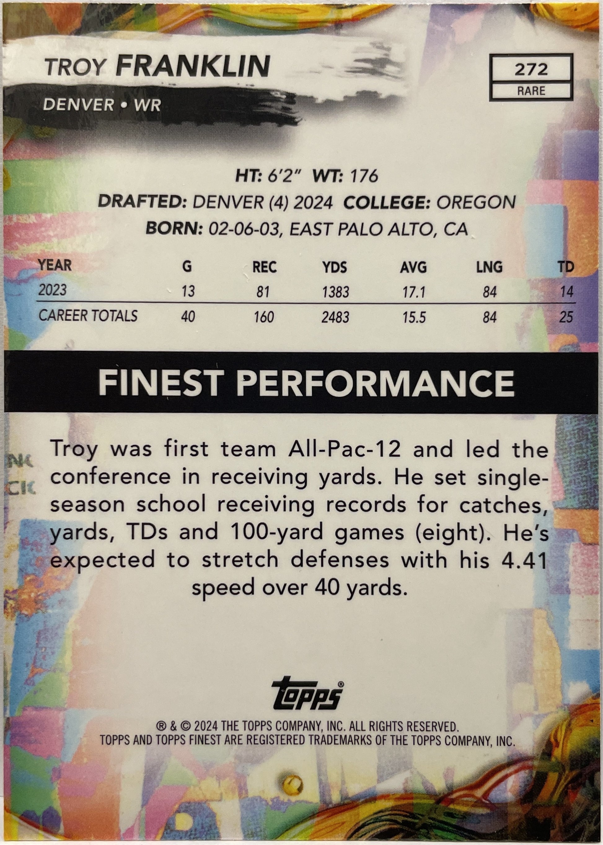 Troy Franklin 136/150 Rookie Topps Finest Football 2024 Denver