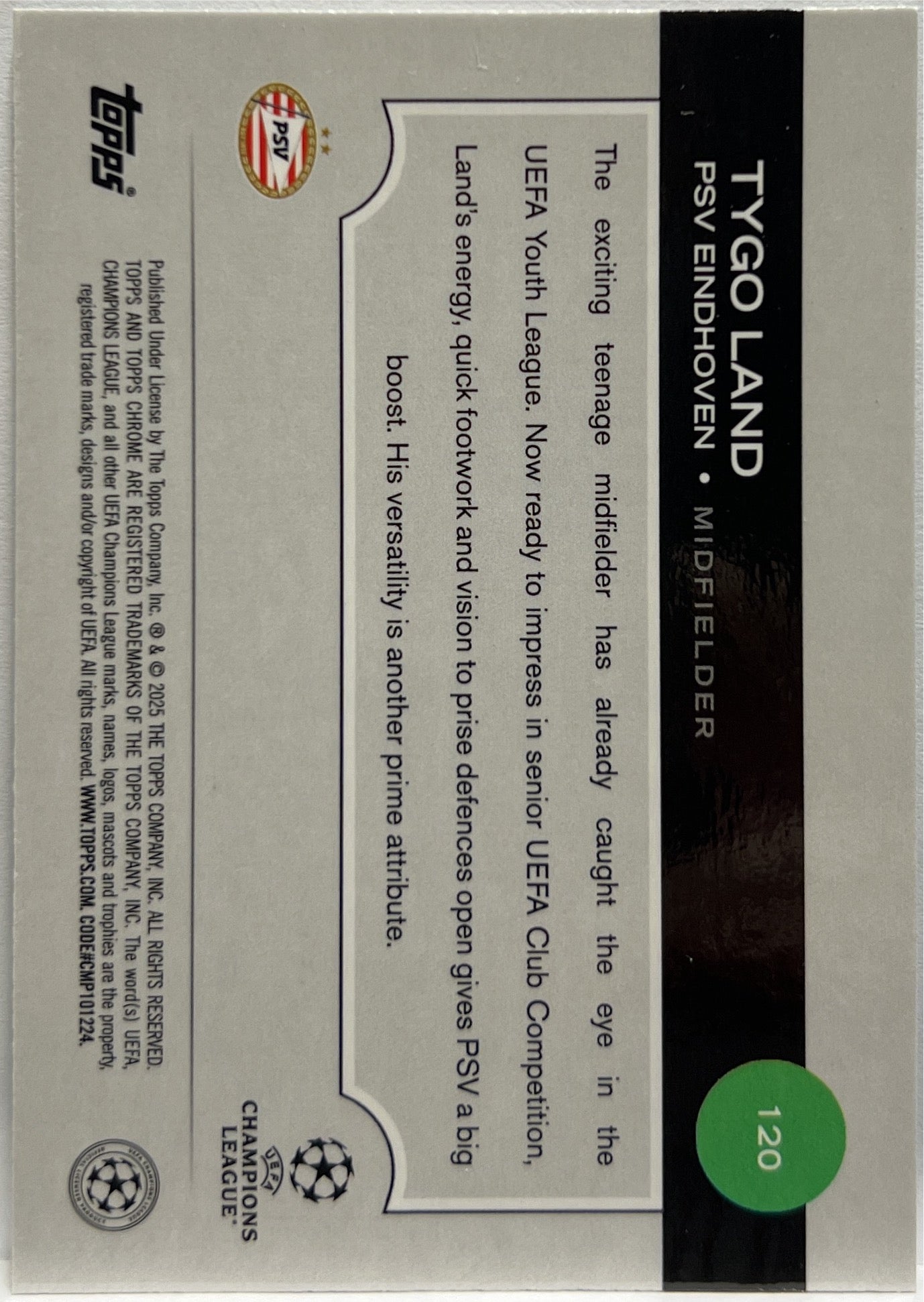 Tygo Land 67/175 Rookie Pink RayWave Topps Chrome UCC 2024/25 PSV Eindhoven