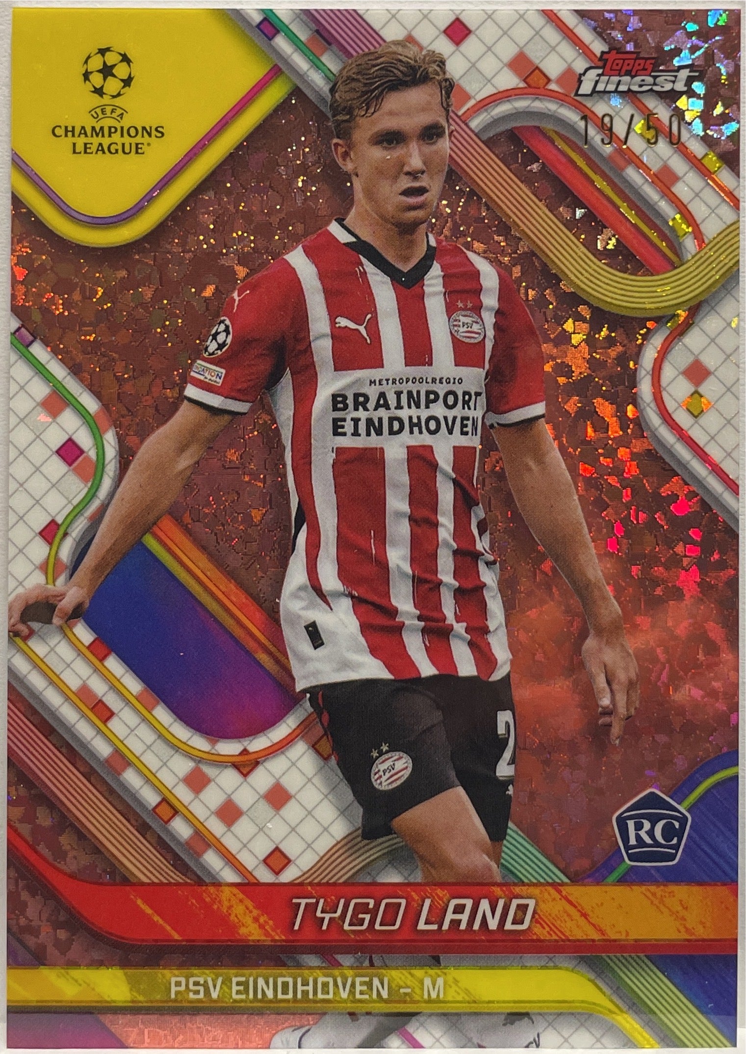 Tygo Land 19/50 Rookie Rose Gold Mini Diamond Topps Finest UCC 2024/25 PSV Heindhoven