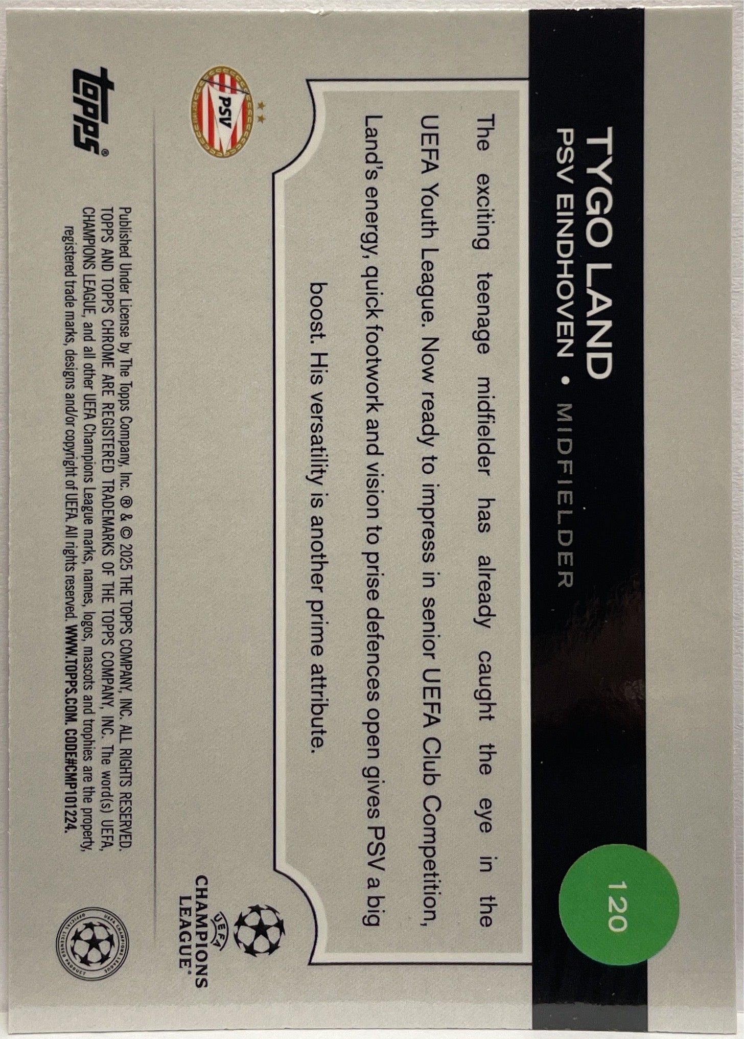 Tygo Land 3/250 Rookie Pink Topps Chrome UCC 2024/25 PSV Eindhoven
