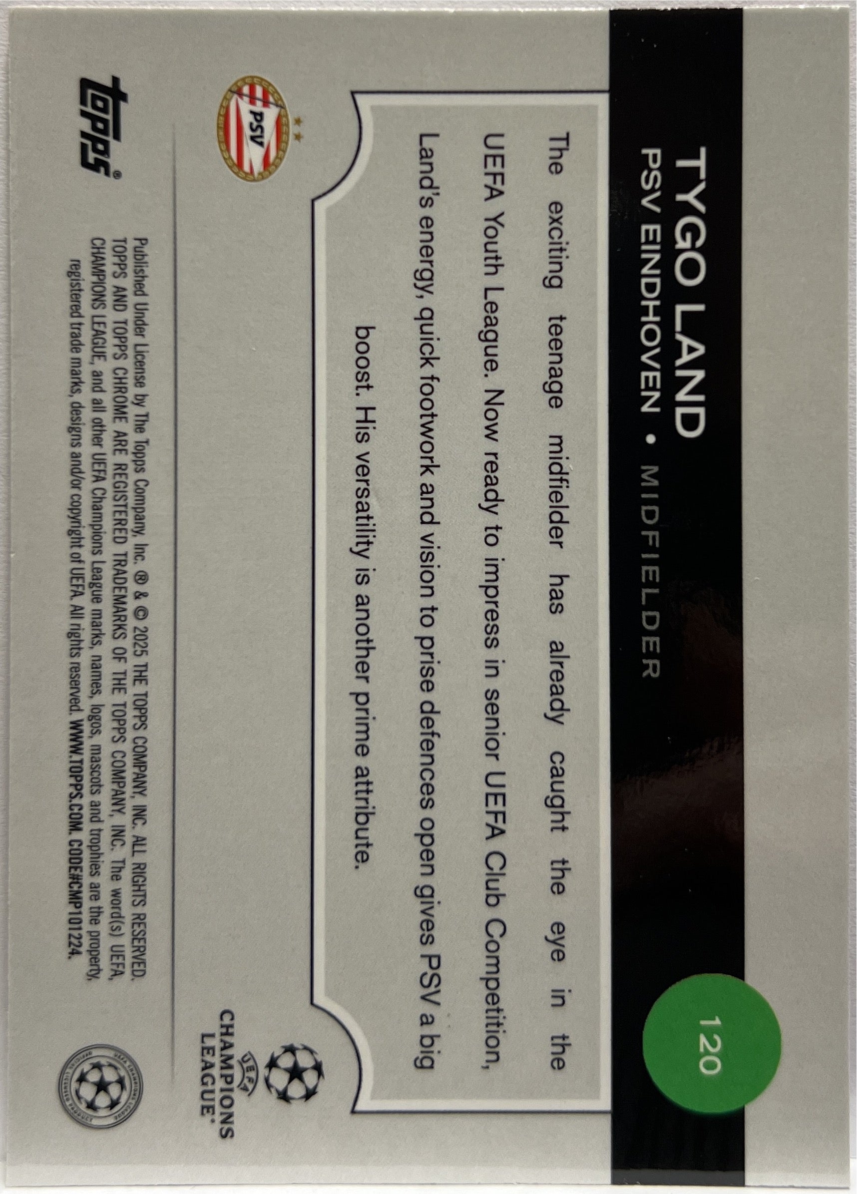 Tygo Land 67/175 Rookie Pink RayWave Topps Chrome UCC 2024/25 PSV Eindhoven