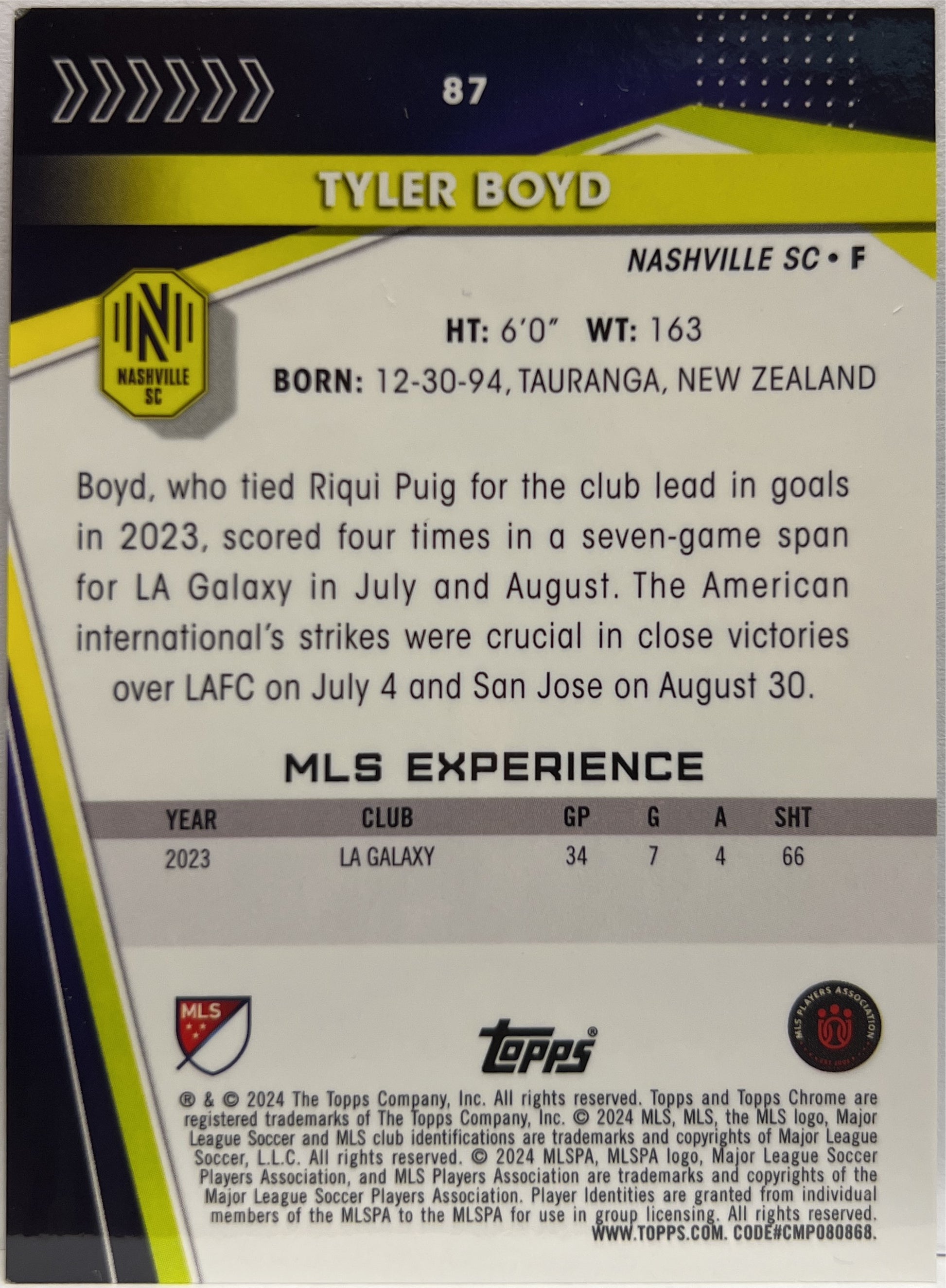 Tyler Boyd 123/199 Purple Topps Chrome MLS 2023/24 Nashville